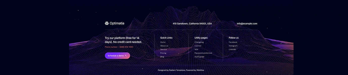 {"type":"@webflow/XscpData","payload":{"nodes":[{"_id":"d2d68431-b7b8-94a6-f5f5-b2241ec34638","type":"Section","tag":"section","classes":["a978793a-8f91-7300-8d48-349448b29451","6dd11b25-0343-963b-94c2-02558dd29131"],"children":["058324f6-e424-496c-48ea-75e198fd567e","43c1f522-0457-9a12-e807-86005f5612f1"],"data":{"tag":"section","devlink":{"runtimeProps":{},"slot":""},"displayName":"","attr":{"id":""},"xattr":[],"search":{"exclude":false},"visibility":{"conditions":[]},"grid":{"type":"section"},"style":{"base":{"small":{"noPseudo":{"gridColumnStart":"span 2","gridColumnEnd":"span 2"}}}}}},{"_id":"058324f6-e424-496c-48ea-75e198fd567e","type":"BlockContainer","tag":"div","classes":["2e21e857-9682-1d02-6e8d-096fe4dc7f2c"],"children":["8e254ea6-3576-9262-eb67-5fe5b8677ea1"],"data":{"tag":"div","devlink":{"runtimeProps":{},"slot":""},"displayName":"","attr":{"id":""},"xattr":[],"search":{"exclude":false},"visibility":{"conditions":[]},"grid":{"type":"container"}}},{"_id":"8e254ea6-3576-9262-eb67-5fe5b8677ea1","type":"Block","tag":"div","classes":["b6d7ade4-9ef9-ffb4-0f66-6f38a98d6244"],"children":["887118e1-589d-5239-9235-6a7a2c35f783","8a99cb66-0e18-a68a-4441-2ef29be77ac0","a873e7de-a6a8-7fd2-4e94-4017ced94aa8"],"data":{"text":false,"tag":"div","devlink":{"runtimeProps":{},"slot":""},"displayName":"","attr":{"id":""},"xattr":[],"search":{"exclude":false},"visibility":{"conditions":[]}}},{"_id":"887118e1-589d-5239-9235-6a7a2c35f783","type":"Block","tag":"div","classes":["a978793a-8f91-7300-8d48-349448b2945f"],"children":["93b28688-7ad0-7a13-85da-877677391875"],"data":{"text":false,"tag":"div","devlink":{"runtimeProps":{},"slot":""},"displayName":"","attr":{"id":""},"xattr":[],"search":{"exclude":false},"visibility":{"conditions":[]}}},{"_id":"93b28688-7ad0-7a13-85da-877677391875","type":"Grid","tag":"div","classes":["a978793a-8f91-7300-8d48-349448b2945a"],"children":["0af8a71a-6e7c-f3a1-7b6c-baa77a760ece","f5b4063d-e3e7-3ab3-cbad-5c6043b760cf","f29bb5f3-50ce-3fc0-bde3-836c42967a80"],"data":{"devlink":{"runtimeProps":{},"slot":""},"displayName":"","attr":{"id":""},"xattr":[],"search":{"exclude":false},"visibility":{"conditions":[]},"tag":"div","grid":"two-by-two"}},{"_id":"0af8a71a-6e7c-f3a1-7b6c-baa77a760ece","type":"Block","tag":"div","classes":["a978793a-8f91-7300-8d48-349448b2945c"],"children":["d3f35e4a-26d0-becd-f421-ca8ca5ce3fae"],"data":{"text":false,"tag":"div","devlink":{"runtimeProps":{},"slot":""},"displayName":"","attr":{"id":""},"xattr":[],"search":{"exclude":false},"visibility":{"conditions":[]},"style":{"base":{"main":{"noPseudo":{"gridColumnStart":"span 2","gridColumnEnd":"span 2","gridRowStart":"span 1","gridRowEnd":"span 1"}},"medium":{"noPseudo":{"gridColumnStart":"span 1","gridColumnEnd":"span 1"}},"tiny":{"noPseudo":{}}}}}},{"_id":"d3f35e4a-26d0-becd-f421-ca8ca5ce3fae","type":"Link","tag":"a","classes":["a978793a-8f91-7300-8d48-349448b2945e"],"children":["5e25c470-01d7-f625-e9f4-88ab834fde29"],"data":{"button":false,"block":"inline","link":{"mode":"external","href":"#"},"eventIds":[],"attr":{"id":"","href":"#"},"devlink":{"runtimeProps":{},"slot":""},"displayName":"","xattr":[],"search":{"exclude":false},"visibility":{"conditions":[]}}},{"_id":"5e25c470-01d7-f625-e9f4-88ab834fde29","type":"Image","tag":"img","classes":[],"children":[],"data":{"img":{"id":"69087eafe5b738f1fba4c2da"},"srcsetDisabled":false,"attr":{"width":"165","height":"44","alt":"__wf_reserved_inherit","src":"https://cdn.prod.website-files.com/69087eafe5b738f1fba4c198/69087eafe5b738f1fba4c2da_optimatia-logo.svg","loading":"lazy","id":""},"sizes":[],"devlink":{"runtimeProps":{},"slot":""},"displayName":"","xattr":[],"search":{"exclude":false},"visibility":{"conditions":[]}}},{"_id":"f5b4063d-e3e7-3ab3-cbad-5c6043b760cf","type":"Block","tag":"div","classes":["a978793a-8f91-7300-8d48-349448b2945b"],"children":["961d4b83-20fc-264e-0f25-f9c949e455ab"],"data":{"text":false,"tag":"div","devlink":{"runtimeProps":{},"slot":""},"displayName":"","attr":{"id":""},"xattr":[],"search":{"exclude":false},"visibility":{"conditions":[]},"style":{"base":{"medium":{"noPseudo":{"justifySelf":"end"}},"tiny":{"noPseudo":{"justifySelf":"start"}}}}}},{"_id":"961d4b83-20fc-264e-0f25-f9c949e455ab","type":"Block","tag":"div","classes":["2e21e857-9682-1d02-6e8d-096fe4dc7f2e"],"children":["1cf27d4f-e3e3-d512-f3e2-7d4526f80b3e"],"data":{"text":true,"tag":"div","devlink":{"runtimeProps":{},"slot":""},"displayName":"","attr":{"id":""},"xattr":[],"search":{"exclude":false},"visibility":{"conditions":[]}}},{"_id":"1cf27d4f-e3e3-d512-f3e2-7d4526f80b3e","text":true,"v":"410 Sandtown, California 94001, USA"},{"_id":"f29bb5f3-50ce-3fc0-bde3-836c42967a80","type":"Block","tag":"div","classes":["a978793a-8f91-7300-8d48-349448b29454"],"children":["7a2f6e49-7156-80c9-04c9-868700717554"],"data":{"text":false,"tag":"div","devlink":{"runtimeProps":{},"slot":""},"displayName":"","attr":{"id":""},"xattr":[],"search":{"exclude":false},"visibility":{"conditions":[]},"style":{"base":{"main":{"noPseudo":{"justifySelf":"end"}},"tiny":{"noPseudo":{"justifySelf":"start"}},"small":{"noPseudo":{"justifySelf":"start"}}}}}},{"_id":"7a2f6e49-7156-80c9-04c9-868700717554","type":"Link","tag":"a","classes":["2e21e857-9682-1d02-6e8d-096fe4dc7f2e","a978793a-8f91-7300-8d48-349448b29468"],"children":["c3a6b5dd-a594-7b18-49e4-84ae9446b62c"],"data":{"button":false,"block":"","link":{"mode":"email","email":"info@example.com"},"eventIds":[],"attr":{"id":"","href":"#"},"devlink":{"runtimeProps":{},"slot":""},"displayName":"","xattr":[],"search":{"exclude":false},"visibility":{"conditions":[]}}},{"_id":"c3a6b5dd-a594-7b18-49e4-84ae9446b62c","text":true,"v":"info@example.com"},{"_id":"8a99cb66-0e18-a68a-4441-2ef29be77ac0","type":"Block","tag":"div","classes":["a978793a-8f91-7300-8d48-349448b2945d","a978793a-8f91-7300-8d48-349448b2946b"],"children":["3b7364fa-c5f4-35ec-6b1f-2b8f4192f06e","6fa575b5-4977-9cec-0fe6-c98ed204be05","31193808-31a5-16bc-0bdc-291963946120"],"data":{"text