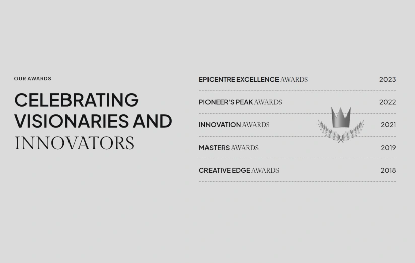 {"type":"@webflow/XscpData","payload":{"nodes":[{"_id":"4e6fc3c1-5305-feff-81a6-5c3a24078a9b","type":"Section","tag":"section","classes":["cc168cec-bf60-1d22-5ddb-b8c56937b66c"],"children":["0507af4c-2967-f736-5a3f-395c6f0bfeb0"],"data":{"tag":"section","devlink":{"runtimeProps":{},"slot":""},"displayName":"","attr":{"id":""},"xattr":[],"search":{"exclude":false},"visibility":{"conditions":[]},"grid":{"type":"section"}}},{"_id":"0507af4c-2967-f736-5a3f-395c6f0bfeb0","type":"Block","tag":"div","classes":[],"children":["f3dc4e90-8ac2-b9de-0e59-b206fa282ddb","e22f9b55-4500-873a-b5a2-156d271927e2"],"data":{"text":false,"tag":"div","devlink":{"runtimeProps":{},"slot":""},"displayName":"","attr":{"id":""},"xattr":[],"search":{"exclude":false},"visibility":{"conditions":[]}}},{"_id":"f3dc4e90-8ac2-b9de-0e59-b206fa282ddb","type":"Block","tag":"div","classes":["10240f1e-d0b4-7889-aacd-b3a831ea7dd8"],"children":["6159ab16-381d-161c-a653-e41768c04b75","ba6ab35b-ddf7-8960-7502-be277fefc4cc"],"data":{"text":false,"tag":"div","devlink":{"runtimeProps":{},"slot":""},"displayName":"","attr":{"id":""},"xattr":[],"search":{"exclude":false},"visibility":{"conditions":[]}}},{"_id":"6159ab16-381d-161c-a653-e41768c04b75","type":"Block","tag":"div","classes":["08ffdf9d-8c7d-81e1-452c-844e36a725d2"],"children":["3da672db-ba47-2152-7648-a15d62c18b02","6bab1646-0928-a1f2-eb43-34bc29019cb1"],"data":{"text":false,"tag":"div","devlink":{"runtimeProps":{},"slot":""},"displayName":"","attr":{"id":""},"xattr":[],"search":{"exclude":false},"visibility":{"conditions":[]}}},{"_id":"3da672db-ba47-2152-7648-a15d62c18b02","type":"Block","tag":"div","classes":["8aecaccd-d005-2ac4-6a1c-1c172acdb782","41f25530-bc2b-f3b5-002c-9a4cd553acef","da48e98c-c8a8-56ad-0dbf-db0701a47beb","00cdc496-5b79-2474-cec3-f406a731eca2"],"children":["922ac9be-e445-dec5-1572-d4c509902fb8"],"data":{"text":true,"tag":"div","devlink":{"runtimeProps":{},"slot":""},"displayName":"","attr":{"id":""},"xattr":[],"search":{"exclude":false},"visibility":{"conditions":[]}}},{"_id":"922ac9be-e445-dec5-1572-d4c509902fb8","text":true,"v":"Our Awards"},{"_id":"6bab1646-0928-a1f2-eb43-34bc29019cb1","type":"Block","tag":"div","classes":["90f5f5fc-d337-3b98-d7fb-3b494194540d","e01b0c52-d0b7-440a-3086-827f48127317"],"children":["c7ecdfbc-8f62-cb21-7b17-235b25848e70","b37fb63f-162f-d37a-b225-2396dc461c20"],"data":{"text":true,"tag":"div","devlink":{"runtimeProps":{},"slot":""},"displayName":"","attr":{"id":""},"xattr":[],"search":{"exclude":false},"visibility":{"conditions":[]}}},{"_id":"c7ecdfbc-8f62-cb21-7b17-235b25848e70","text":true,"v":"Celebrating Visionaries and "},{"_id":"b37fb63f-162f-d37a-b225-2396dc461c20","type":"Span","tag":"span","classes":["09884b03-5b57-f2e9-2f82-2230186d2b27"],"children":["52dfc5e8-1bce-94f5-d15b-a87aaea61f11"],"data":{"devlink":{"runtimeProps":{},"slot":""},"displayName":"","attr":{"id":""},"xattr":[],"search":{"exclude":false},"visibility":{"conditions":[]}}},{"_id":"52dfc5e8-1bce-94f5-d15b-a87aaea61f11","text":true,"v":"Innovators"},{"_id":"ba6ab35b-ddf7-8960-7502-be277fefc4cc","type":"Block","tag":"div","classes":["60044190-6b07-127d-98cd-f3efed67aafc"],"children":["03881db5-8956-c44b-c66c-852c0e665d82","e86d1abc-95fe-8ae1-5a9a-17dead86c743","666e4286-0bfa-661a-83e0-82717add5336","dc765c91-b0dd-c06d-4d0c-2be80ec7a4b0","bceecc7b-f437-ad2d-dce3-75ed374369cd"],"data":{"text":false,"tag":"div","devlink":{"runtimeProps":{},"slot":""},"displayName":"","attr":{"id":""},"xattr":[],"search":{"exclude":false},"visibility":{"conditions":[]}}},{"_id":"03881db5-8956-c44b-c66c-852c0e665d82","type":"Block","tag":"div","classes":["561cf0b7-2dcd-2ba1-fdfc-0b878d5ebd85"],"children":["8e08adb8-a6a1-9221-2a4c-8ca360ce2af6","f3eb4977-31d1-ad7b-e6dd-75050030667e","3ffc3424-6454-b08a-bff8-98485ca7d678"],"data":{"text":false,"tag":"div","devlink":{"runtimeProps":{},"slot":""},"displayName":"","attr":{"id":""},"xattr":[],"search":{"exclude":false},"visibility":{"conditions":[]}}},{"_id":"8e08adb8-a6a1-9221-2a4c-8ca360ce2af6","type":"Block","tag":"div","classes":["06564709-dbda-f780-799c-097d45b0d3be","29657083-a468-4bbb-6d8c-86e4f8671ff6"],"children":["c42b295e-4d02-4b5d-aa37-2354fa5c75a5","85f099c4-35cb-f0ad-d631-16f97f87a74e"],"data":{"text":true,"tag":"div","devlink":{"runtimeProps":{},"slot":""},"displayName":"","attr":{"id":""},"xattr":[],"search":{"exclude":false},"visibility":{"conditions":[]}}},{"_id":"c42b295e-4d02-4b5d-aa37-2354fa5c75a5","text":true,"v":"Epicentre Excellence "},{"_id":"85f099c4-35cb-f0ad-d631-16f97f87a74e","type":"Span","tag":"span","classes":["09884b03-5b57-f2e9-2f82-2230186d2b27"],"children":["9bbe6834-897b-60dd-076e-c8193fc6c5a3"],"data":{"devlink":{"runtimeProps":{},"slot":""},"displayName":"","attr":{"id":""},"xattr":[],"search":{"exclude":false},"visibility":{"conditions":[]}}},{"_id":"9bbe6834-897b-60dd-076e-c8193fc6c5a3","text":true,"v":"Awards"},{"_id":"f3eb4977-31d1-ad7b-e6dd-75050030667e","type":"Block","tag":"div","classes":["38c7fe25-c4a7-9822-3dbb-188b0388b904"],"children":["6af5eadf-309d-6d7b-749c-36af675e03cf"],"data":{"text":false,"tag":"div","devlink":{"runtimeProps":{},"slot":""},"displayName":"","attr":{"id":""},"xattr":[],"search":{"exclude":false},"visibility":{"conditions":[]}}},{"_id":"6af5eadf-309d-6d7b-749c-36af675e03cf","type":"Image","tag":"img","classes":["39c786e7-f298-1937-1675-0e458746abe3"],"children":[],"data":{"img":{"id":"6673f5666ffb7206a6362ff1"},"srcsetDisabled":false,"attr":{"width":"168","height":"146","alt":"__wf_reserved_inherit","src":"https://cdn.prod.website-files.com/6667d9ea04782fca0e18e94b/6673f5666ffb7206a6362ff1_Award.webp","loading":"lazy","id":""},"sizes":[{"max":10000,"size":"168px"}],"devlink":{"runtimeProps":{},"slot":""},"displayName":"","xattr":[],"search":{"exclude":false},"visibility":{"conditions":[]}}},{"_id":"3ffc3424-6454-b08a-bff8-98485ca7d678","type":"Block","tag":"div","classes":["06564709-dbda-f780-799c-097d45b0d3be"],"children":["439d1b61-0ec1-5f6c-80f5-c8b9d3d10