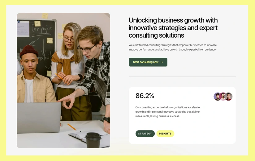 {"type":"@webflow/XscpData","payload":{"nodes":[{"_id":"af5917a2-a64f-608d-ea4a-5d1a2c48739e","type":"Section","tag":"section","classes":["91aff502-1a55-2994-fad2-31f1b109556f"],"children":["675e8828-1255-19c8-f16c-418788e3356f"],"data":{"tag":"section","devlink":{"runtimeProps":{},"slot":""},"displayName":"","attr":{"id":""},"xattr":[],"search":{"exclude":false},"visibility":{"conditions":[]},"grid":{"type":"section"}}},{"_id":"675e8828-1255-19c8-f16c-418788e3356f","type":"BlockContainer","tag":"div","classes":["b8c6ae75-2cde-b91b-2655-eb13d2f26174"],"children":["ac5afb82-e841-551c-b69e-40cf9ad2c930"],"data":{"tag":"div","devlink":{"runtimeProps":{},"slot":""},"displayName":"","attr":{"id":""},"xattr":[],"search":{"exclude":false},"visibility":{"conditions":[]},"grid":{"type":"container"}}},{"_id":"ac5afb82-e841-551c-b69e-40cf9ad2c930","type":"HFlex","tag":"div","classes":["8c246775-6bf5-09b3-0786-c9813ae6062a"],"children":["ba4efb51-9a4e-3815-1e95-5322753e05b6","25516012-d26a-2470-c7b7-884408a9ec9b"],"data":{"tag":"div","devlink":{"runtimeProps":{},"slot":""},"displayName":"","attr":{"id":""},"xattr":[],"search":{"exclude":false},"visibility":{"conditions":[]}}},{"_id":"ba4efb51-9a4e-3815-1e95-5322753e05b6","type":"Block","tag":"div","classes":["93e2b459-f6d7-1aed-b35d-23b8c369b1cd","247f19fc-1517-037c-53ff-959cd6127af4","38fc0abe-7c92-1dd0-44d2-5350dc1781e0"],"children":["463f8804-b23a-2d68-fa4f-3ee0e46294a2"],"data":{"text":false,"tag":"div","devlink":{"runtimeProps":{},"slot":""},"displayName":"","attr":{"id":""},"xattr":[],"search":{"exclude":false},"visibility":{"conditions":[]}}},{"_id":"463f8804-b23a-2d68-fa4f-3ee0e46294a2","type":"Image","tag":"img","classes":[],"children":[],"data":{"img":{"id":"68e363653e2a76afead99c3f"},"srcsetDisabled":false,"attr":{"width":"550","height":"800","alt":"__wf_reserved_inherit","src":"https://cdn.prod.website-files.com/6667e1295d7fb05ba4fa34fe/68e363653e2a76afead99c3f_About%20v9%20left%20office%20image.webp","loading":"lazy","id":""},"sizes":[{"max":767,"size":"100vw"},{"max":10000,"size":"550px"}],"devlink":{"runtimeProps":{},"slot":""},"displayName":"","xattr":[],"search":{"exclude":false},"visibility":{"conditions":[]}}},{"_id":"25516012-d26a-2470-c7b7-884408a9ec9b","type":"VFlex","tag":"div","classes":["8c246775-6bf5-09b3-0786-c9813ae60622"],"children":["fa828633-9461-6ec2-83c4-5baa9fef7bb0","f6c3f090-c0e8-b03f-2aad-df61ce984a4d","22430b01-b8b5-40ee-50cd-22e8fe9b2cc4"],"data":{"tag":"div","devlink":{"runtimeProps":{},"slot":""},"displayName":"","attr":{"id":""},"xattr":[],"search":{"exclude":false},"visibility":{"conditions":[]}}},{"_id":"fa828633-9461-6ec2-83c4-5baa9fef7bb0","type":"VFlex","tag":"div","classes":["8c246775-6bf5-09b3-0786-c9813ae6061e"],"children":["bb915872-68d0-a950-b87b-b3d0d3e6d96f","35a8ce47-b52d-2cbb-b445-f74687a306b1","1e7df1d5-dadd-11b2-a2fe-195f710761ca"],"data":{"tag":"div","devlink":{"runtimeProps":{},"slot":""},"displayName":"","attr":{"id":""},"xattr":[{"name":"box","value":""}],"search":{"exclude":false},"visibility":{"conditions":[]}}},{"_id":"bb915872-68d0-a950-b87b-b3d0d3e6d96f","type":"Heading","tag":"h2","classes":["d9a51ef0-0ab8-01c5-0d7d-7fccce4640bb","3dfdfe7d-4feb-7e10-0cc0-e5447301b006"],"children":["e26d5d57-a079-2153-d0ba-a29a2492f144"],"data":{"tag":"h2","devlink":{"runtimeProps":{},"slot":""},"displayName":"","attr":{"id":""},"xattr":[{"name":"heading","value":""}],"search":{"exclude":false},"visibility":{"conditions":[]}}},{"_id":"e26d5d57-a079-2153-d0ba-a29a2492f144","text":true,"v":"Unlocking business growth with innovative strategies and expert consulting solutions"},{"_id":"35a8ce47-b52d-2cbb-b445-f74687a306b1","type":"Paragraph","tag":"p","classes":["c8ffbf4a-fdd0-3a13-6dad-4ab42572ede2"],"children":["58bd602c-6287-2c67-7153-4fa519c04ff9"],"data":{"devlink":{"runtimeProps":{},"slot":""},"displayName":"","attr":{"id":""},"xattr":[],"search":{"exclude":false},"visibility":{"conditions":[]}}},{"_id":"58bd602c-6287-2c67-7153-4fa519c04ff9","text":true,"v":"We craft tailored consulting strategies that empower businesses to innovate, improve performance, and achieve growth through expert-driven guidance."},{"_id":"1e7df1d5-dadd-11b2-a2fe-195f710761ca","type":"Block","tag":"div","classes":[],"children":["802a332f-4a7b-0339-e689-09c25df2a736"],"data":{"text":false,"tag":"div","devlink":{"runtimeProps":{},"slot":""},"displayName":"","attr":{"id":""},"xattr":[],"search":{"exclude":false},"visibility":{"conditions":[]}}},{"_id":"802a332f-4a7b-0339-e689-09c25df2a736","type":"Link","tag":"a","classes":["bf1038fa-3bf5-c9fd-25be-c46c1599f084","679936ae-be9d-d289-5eb3-c806f6ea034c"],"children":["a9ddba11-a436-5343-e780-d6fcbb1e0324","48df2029-db3b-85ef-2c1f-e406b7953e1e"],"data":{"button":false,"block":"inline","link":{"mode":"external","href":"#"},"eventIds":[],"attr":{"id":"","href":"#"},"devlink":{"runtimeProps":{},"slot":""},"displayName":"","xattr":[],"search":{"exclude":false},"visibility":{"conditions":[]}}},{"_id":"a9ddba11-a436-5343-e780-d6fcbb1e0324","type":"HFlex","tag":"div","classes":["cd4fccfd-3abb-2714-0382-a4af5080e6a1","679936ae-be9d-d289-5eb3-c806f6ea034d"],"children":["87e136e1-9370-b940-bac1-b5172f37c127","ea060bbd-1d9d-03a4-3189-9250c6aec452"],"data":{"tag":"div","devlink":{"runtimeProps":{},"slot":""},"displayName":"","attr":{"id":""},"xattr":[],"search":{"exclude":false},"visibility":{"conditions":[]}}},{"_id":"87e136e1-9370-b940-bac1-b5172f37c127","type":"Block","tag":"div","classes":["a0e31d35-8bd8-d51f-dbc4-fa366baa6585"],"children":["5bdf72ae-8279-27fa-6124-3ba84ab54068"],"data":{"text":true,"tag":"div","devlink":{"runtimeProps":{},"slot":""},"displayName":"","attr":{"id":""},"xattr":[],"search":{"exclude":false},"visibility":{"conditions":[]}}},{"_id":"5bdf72ae-8279-27fa-6124-3ba84ab54068","text":true,"v":"Start consulting now"},{"_id":"ea060bbd-1d9d-03a4-3189-9250c6aec452","type":"Block","tag":"div","classes":[],"children":["d59f5ae0-0f0b-19f0-b57f-9b8fc7ff4d42"],"data":{"text":f