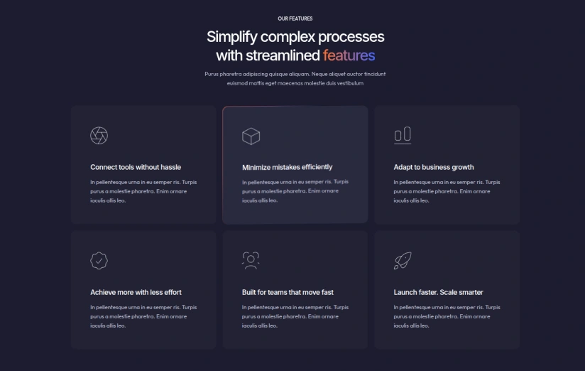 {"type":"@webflow/XscpData","payload":{"nodes":[{"_id":"9434452c-c5bc-66e9-6be1-e4bfd14b2a2f","type":"Section","tag":"section","classes":["f88b312d-becd-7afe-183e-65aec7e601b6"],"children":["25b47f8a-8684-8b11-d4a3-76fe78535137"],"data":{"tag":"section","devlink":{"runtimeProps":{},"slot":""},"displayName":"","attr":{"id":""},"xattr":[],"search":{"exclude":false},"visibility":{"conditions":[]},"grid":{"type":"section"}}},{"_id":"25b47f8a-8684-8b11-d4a3-76fe78535137","type":"BlockContainer","tag":"div","classes":["8ef47bf6-f7fb-9136-fc25-4343e5846294"],"children":["798166cd-f955-0905-68a8-864c930ce214","ccd8626c-46f6-d773-65e0-5b9c5c996b8f"],"data":{"tag":"div","devlink":{"runtimeProps":{},"slot":""},"displayName":"","attr":{"id":""},"xattr":[],"search":{"exclude":false},"visibility":{"conditions":[]},"grid":{"type":"container"}}},{"_id":"798166cd-f955-0905-68a8-864c930ce214","type":"VFlex","tag":"div","classes":["f88b312d-becd-7afe-183e-65aec7e60170","f88b312d-becd-7afe-183e-65aec7e601c1","1aeb1aa5-2e4f-64fa-1d9a-9681de14fa16"],"children":["6003f739-c8e1-27fb-0f54-c8a1966da0e0","96d12413-43c1-781d-272b-31d6920eef4a","a302e08f-f21d-d94a-5760-6ca90ccb3285"],"data":{"tag":"div","devlink":{"runtimeProps":{},"slot":""},"displayName":"","attr":{"id":""},"xattr":[],"search":{"exclude":false},"visibility":{"conditions":[]}}},{"_id":"6003f739-c8e1-27fb-0f54-c8a1966da0e0","type":"Block","tag":"div","classes":["8ef47bf6-f7fb-9136-fc25-4343e584622c"],"children":["27629c35-ac3b-9ad7-b018-84f14ba2cba1"],"data":{"text":false,"tag":"div","devlink":{"runtimeProps":{},"slot":""},"displayName":"","attr":{"id":""},"xattr":[],"search":{"exclude":false},"visibility":{"conditions":[]}}},{"_id":"27629c35-ac3b-9ad7-b018-84f14ba2cba1","type":"Block","tag":"div","classes":["8ef47bf6-f7fb-9136-fc25-4343e58462cd","8ef47bf6-f7fb-9136-fc25-4343e5846311","8ef47bf6-f7fb-9136-fc25-4343e5846346"],"children":["0fe84411-a044-9c1a-ebef-77f588737448"],"data":{"text":true,"tag":"div","devlink":{"runtimeProps":{},"slot":""},"displayName":"","attr":{"id":""},"xattr":[],"search":{"exclude":false},"visibility":{"conditions":[]}}},{"_id":"0fe84411-a044-9c1a-ebef-77f588737448","text":true,"v":"our features"},{"_id":"96d12413-43c1-781d-272b-31d6920eef4a","type":"Block","tag":"div","classes":["8ef47bf6-f7fb-9136-fc25-4343e584622c"],"children":["3234ecdb-35f7-989c-1de4-30a8d5894f91"],"data":{"text":false,"tag":"div","devlink":{"runtimeProps":{},"slot":""},"displayName":"","attr":{"id":""},"xattr":[],"search":{"exclude":false},"visibility":{"conditions":[]}}},{"_id":"3234ecdb-35f7-989c-1de4-30a8d5894f91","type":"Heading","tag":"h2","classes":["8ef47bf6-f7fb-9136-fc25-4343e5846249","8ef47bf6-f7fb-9136-fc25-4343e5846314","f88b312d-becd-7afe-183e-65aec7e601de"],"children":["24a3b66a-0441-8826-b3c6-dbcdc869ffae","91b0044e-bd00-6c46-4388-ce6c9020767e"],"data":{"tag":"h2","devlink":{"runtimeProps":{},"slot":""},"displayName":"","attr":{"id":""},"xattr":[],"search":{"exclude":false},"visibility":{"conditions":[]}}},{"_id":"24a3b66a-0441-8826-b3c6-dbcdc869ffae","text":true,"v":"Simplify complex processes with streamlined "},{"_id":"91b0044e-bd00-6c46-4388-ce6c9020767e","type":"Span","tag":"span","classes":["8ef47bf6-f7fb-9136-fc25-4343e5846259"],"children":["0a8c80d0-4b20-78e4-f3b1-9abbe2926a3c"],"data":{"devlink":{"runtimeProps":{},"slot":""},"displayName":"","attr":{"id":""},"xattr":[],"search":{"exclude":false},"visibility":{"conditions":[]}}},{"_id":"0a8c80d0-4b20-78e4-f3b1-9abbe2926a3c","text":true,"v":"features"},{"_id":"a302e08f-f21d-d94a-5760-6ca90ccb3285","type":"Paragraph","tag":"p","classes":["8ef47bf6-f7fb-9136-fc25-4343e5846249","f88b312d-becd-7afe-183e-65aec7e601c0"],"children":["36f0b4bb-8bbe-3fff-813c-1dbeff69b5cf"],"data":{"devlink":{"runtimeProps":{},"slot":""},"displayName":"","attr":{"id":""},"xattr":[],"search":{"exclude":false},"visibility":{"conditions":[]}}},{"_id":"36f0b4bb-8bbe-3fff-813c-1dbeff69b5cf","text":true,"v":"Purus pharetra adipiscing quisque aliquam. Neque aliquet auctor tincidunt euismod mattis eget maecenas molestie duis vestibulum"},{"_id":"ccd8626c-46f6-d773-65e0-5b9c5c996b8f","type":"Grid","tag":"div","classes":["f88b312d-becd-7afe-183e-65aec7e60167"],"children":["01a9f934-cb75-b689-9362-153108da9a45","f4fcca95-6b06-01b3-4989-fa966de9b2b7","804967f7-576b-f5ff-de70-2ce21eda4681","306745d9-b15a-7dcf-309a-e5c726349b03","60e406fb-ad1d-b662-ed49-46a4417fb678","0cc71288-97ef-0c7f-5fbd-10464e76db38"],"data":{"devlink":{"runtimeProps":{},"slot":""},"displayName":"","attr":{"id":""},"xattr":[],"search":{"exclude":false},"visibility":{"conditions":[]},"tag":"div","grid":"two-by-two"}},{"_id":"01a9f934-cb75-b689-9362-153108da9a45","type":"Link","tag":"a","classes":["f88b312d-becd-7afe-183e-65aec7e6017a","4c5337d3-790f-9e16-232e-5ba5264c8b17"],"children":["ad8151f3-bd0c-392a-d955-1bfcf02440bb","eeeb6e85-4d8c-84e1-21f9-ca6f9fb9968b"],"data":{"button":false,"block":"inline","link":{"mode":"external","href":"#"},"eventIds":[],"attr":{"id":"","href":"#"},"devlink":{"runtimeProps":{},"slot":""},"displayName":"","xattr":[],"search":{"exclude":false},"visibility":{"conditions":[]},"style":{"base":{"main":{"noPseudo":{}}}}}},{"_id":"ad8151f3-bd0c-392a-d955-1bfcf02440bb","type":"Block","tag":"div","classes":["f88b312d-becd-7afe-183e-65aec7e60184"],"children":[],"data":{"text":false,"tag":"div","devlink":{"runtimeProps":{},"slot":""},"displayName":"","attr":{"id":""},"xattr":[],"search":{"exclude":false},"visibility":{"conditions":[]}}},{"_id":"eeeb6e85-4d8c-84e1-21f9-ca6f9fb9968b","type":"Block","tag":"div","classes":["f88b312d-becd-7afe-183e-65aec7e601ab"],"children":["9a66def2-c386-38dc-b117-44951062aa9e","df7e4651-b980-bb66-b89f-d26ca9bddce3"],"data":{"text":false,"tag":"div","devlink":{"runtimeProps":{},"slot":""},"displayName":"","attr":{"id":""},"xattr":[],"search":{"exclude":false},"visibility":{"conditions":[]}}},{"_id":"9a66def2-c386-38dc-b117-44951062aa9e","type":"Image","tag":"img","classes":[],"children":[],"data