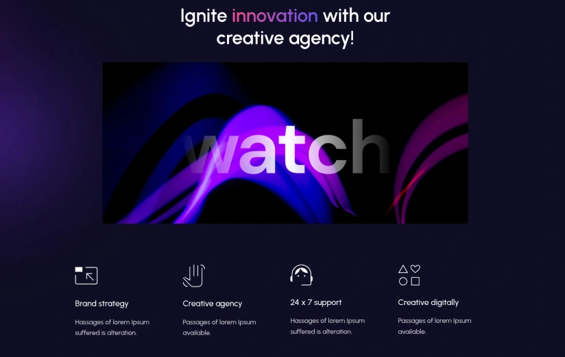 {"type":"@webflow/XscpData","payload":{"nodes":[{"_id":"5c846066-5491-24ee-5d11-a64dd425168f","type":"Block","tag":"div","classes":["c03bd5c0-d7b2-4334-637a-a382655c84a4"],"children":["d3722db1-46f0-f9fd-b565-a53cb61b40d0","e8b626ce-cc8c-c16c-34d1-6334224f25fd"],"data":{"text":false,"tag":"div","devlink":{"runtimeProps":{},"slot":""},"displayName":"","attr":{"id":""},"xattr":[],"search":{"exclude":false},"visibility":{"conditions":[]}}},{"_id":"d3722db1-46f0-f9fd-b565-a53cb61b40d0","type":"Section","tag":"section","classes":["fe378637-c9a9-7525-d411-39f5433229f0"],"children":["22dcb18a-875b-a0db-a9f1-42c680c00435","0468d3c4-6539-6dcb-eccf-6ae7710f3a7a"],"data":{"tag":"section","devlink":{"runtimeProps":{},"slot":""},"displayName":"","attr":{"id":""},"xattr":[],"search":{"exclude":false},"visibility":{"conditions":[]},"grid":{"type":"section"}}},{"_id":"22dcb18a-875b-a0db-a9f1-42c680c00435","type":"Block","tag":"div","classes":["8a4c9852-5ad6-6023-0f4d-1a11fbb9aa87"],"children":["fe9b7be2-34cf-f663-a199-8f6d6b5e9592"],"data":{"text":false,"tag":"div","devlink":{"runtimeProps":{},"slot":""},"displayName":"","attr":{"id":""},"xattr":[],"search":{"exclude":false},"visibility":{"conditions":[]}}},{"_id":"fe9b7be2-34cf-f663-a199-8f6d6b5e9592","type":"Block","tag":"div","classes":["265326a1-3274-b106-52f0-1dc27056fbde","b7d3992e-dc7b-03fa-78ac-ee8f73c9f00a"],"children":["cd047778-575e-9f3a-6ea6-f9b580e84e4c"],"data":{"text":false,"tag":"div","devlink":{"runtimeProps":{},"slot":""},"displayName":"","attr":{"id":""},"xattr":[],"search":{"exclude":false},"visibility":{"conditions":[]}}},{"_id":"cd047778-575e-9f3a-6ea6-f9b580e84e4c","type":"Heading","tag":"h2","classes":[],"children":["e389ff98-67db-606b-b838-f6d2c08d92b5","ee01343c-7b57-0079-8179-0239753f562a","6c35850d-4eb0-0fc1-2525-7b8674678867"],"data":{"tag":"h2","devlink":{"runtimeProps":{},"slot":""},"displayName":"","attr":{"id":""},"xattr":[],"search":{"exclude":false},"visibility":{"conditions":[]}}},{"_id":"e389ff98-67db-606b-b838-f6d2c08d92b5","text":true,"v":"Ignite "},{"_id":"ee01343c-7b57-0079-8179-0239753f562a","type":"Span","tag":"span","classes":["df5d7df7-0388-9b76-3f90-affc7b47276f"],"children":["176bccdd-8a6f-d440-0730-fb77b0265acf"],"data":{"devlink":{"runtimeProps":{},"slot":""},"displayName":"","attr":{"id":""},"xattr":[],"search":{"exclude":false},"visibility":{"conditions":[]}}},{"_id":"176bccdd-8a6f-d440-0730-fb77b0265acf","text":true,"v":"innovation"},{"_id":"6c35850d-4eb0-0fc1-2525-7b8674678867","text":true,"v":" with our creative agency!"},{"_id":"0468d3c4-6539-6dcb-eccf-6ae7710f3a7a","type":"Block","tag":"div","classes":["fe378637-c9a9-7525-d411-39f5433229f1","dac52169-2308-4bfe-6082-6d85fda1b3e4"],"children":["b22b1952-b24c-4c54-1dac-33079883e6e4"],"data":{"text":false,"tag":"div","devlink":{"runtimeProps":{},"slot":""},"displayName":"","attr":{"id":""},"xattr":[],"search":{"exclude":false},"visibility":{"conditions":[]}}},{"_id":"b22b1952-b24c-4c54-1dac-33079883e6e4","type":"Block","tag":"div","classes":["fdec04fa-7c42-b097-4ddf-7f2ccefef7d7"],"children":["77028a87-2570-8b19-ee17-8ec4cb5e26a3"],"data":{"text":false,"tag":"div","devlink":{"runtimeProps":{},"slot":""},"displayName":"","attr":{"id":""},"xattr":[],"search":{"exclude":false},"visibility":{"conditions":[]}}},{"_id":"77028a87-2570-8b19-ee17-8ec4cb5e26a3","type":"LightboxWrapper","tag":"a","classes":["fe378637-c9a9-7525-d411-39f5433229f3","fe378637-c9a9-7525-d411-39f5433229f6"],"children":["648664c7-5280-63d7-b37d-f215ea3ba4b7"],"data":{"attr":{"href":"#","id":""},"lightbox":{"type":"wrapper"},"block":"inline","json":{"items":[{"tag":"Video","val":{"embed":{"meta":{"height":528,"html":"<iframe class=\"embedly-embed\" src=\"//cdn.embedly.com/widgets/media.html?src=https%3A%2F%2Fwww.youtube.com%2Fembed%2FOmz_ae1J4C8%3Ffeature%3Doembed&display_name=YouTube&url=https%3A%2F%2Fwww.youtube.com%2Fwatch%3Fv%3DOmz_ae1J4C8&image=https%3A%2F%2Fi.ytimg.com%2Fvi%2FOmz_ae1J4C8%2Fhqdefault.jpg&key=96f1f04c5f4143bcb0f2e68c87d65feb&type=text%2Fhtml&schema=youtube\" width=\"940\" height=\"528\" scrolling=\"no\" title=\"YouTube embed\" frameborder=\"0\" allow=\"autoplay; fullscreen\" allowfullscreen=\"true\"></iframe>","thumb":{"url":"https://i.ytimg.com/vi/Omz_ae1J4C8/hqdefault.jpg"},"url":"https://www.youtube.com/watch?v=Omz_ae1J4C8","width":940},"url":"https://www.youtube.com/watch?v=Omz_ae1J4C8","type":"video"}}}],"group":""},"displayName":"","xattr":[],"search":{"exclude":false},"visibility":{"conditions":[]}}},{"_id":"648664c7-5280-63d7-b37d-f215ea3ba4b7","type":"Image","tag":"img","classes":["1f679d25-c6e4-95b5-114e-01dbbb9f573e"],"children":[],"data":{"img":{"id":"6715e12a25bd313f89bdcb0f"},"srcsetDisabled":false,"attr":{"width":"609.5","height":"257","alt":"__wf_reserved_inherit","src":"https://cdn.prod.website-files.com/6715e12a25bd313f89bdc946/6715e12a25bd313f89bdcb0f_watch.webp","loading":"lazy","id":""},"sizes":[{"max":479,"size":"100vw"},{"max":767,"size":"94vw"},{"max":10000,"size":"609.5px"}],"devlink":{"runtimeProps":{},"slot":""},"displayName":"","xattr":[],"search":{"exclude":false},"visibility":{"conditions":[]}}},{"_id":"e8b626ce-cc8c-c16c-34d1-6334224f25fd","type":"Section","tag":"section","classes":["dc851ab4-20d3-973f-35e5-82a7972f0cdc"],"children":["5b9e92ce-9eaa-70dd-5a0c-29b2c9b4a155"],"data":{"tag":"section","devlink":{"runtimeProps":{},"slot":""},"displayName":"","attr":{"id":""},"xattr":[],"search":{"exclude":false},"visibility":{"conditions":[]},"grid":{"type":"section"}}},{"_id":"5b9e92ce-9eaa-70dd-5a0c-29b2c9b4a155","type":"Block","tag":"div","classes":["265326a1-3274-b106-52f0-1dc27056fbe1"],"children":["d9eb4c3f-8fa2-f8f8-051a-eb5bec20fdff","f0569244-dcca-1f54-5335-ab34ffd8fa85","5a98ae46-986e-b395-4595-496faf9d60c9","77e3abcb-bd7f-6190-c81f-42fb32ecbc19"],"data":{"text":false,"tag":"div","devlink":{"runtimeProps":{},"slot":""},"displayName":"","attr":{"id":""},"xattr":[],"search":{"exclude":false},"visibility":{"conditions":[]}}},{"_id":"d9