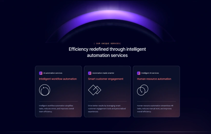 {"type":"@webflow/XscpData","payload":{"nodes":[{"_id":"df052369-ed91-a20a-b30d-98d368014db5","type":"Block","tag":"div","classes":["2c5e1be7-2305-7ec2-fb40-280c9c48436c","b24c4462-f5bd-af3f-db8d-551cf7555ae0"],"children":["f8a06b05-427d-d133-69ea-d9e4fb69f5df","c6e03c60-8b1c-1b7e-20a5-e4eb4daff58b"],"data":{"text":false,"tag":"div","devlink":{"runtimeProps":{},"slot":""},"displayName":"","attr":{"id":""},"xattr":[],"search":{"exclude":false},"visibility":{"conditions":[]}}},{"_id":"f8a06b05-427d-d133-69ea-d9e4fb69f5df","type":"Section","tag":"section","classes":["ce3b9857-5c41-3873-838a-dd98bac53456","ce3b9857-5c41-3873-838a-dd98bac53458"],"children":["73eceda8-974b-08d1-026e-629bcb096574","ce767229-80bf-1ac4-4008-3f233cc4cb26","4e4e421f-8462-6c4b-ccac-ab86fb5248c8"],"data":{"tag":"section","devlink":{"runtimeProps":{},"slot":""},"displayName":"","attr":{"id":""},"xattr":[],"search":{"exclude":false},"visibility":{"conditions":[]},"grid":{"type":"section"}}},{"_id":"73eceda8-974b-08d1-026e-629bcb096574","type":"BlockContainer","tag":"div","classes":["2e21e857-9682-1d02-6e8d-096fe4dc7f2c"],"children":["6088c04f-210c-eefc-7f65-b8443d64a388","ef4b1174-a42f-f904-4b92-ffccedaf06ee"],"data":{"tag":"div","devlink":{"runtimeProps":{},"slot":""},"displayName":"","attr":{"id":""},"xattr":[],"search":{"exclude":false},"visibility":{"conditions":[]},"grid":{"type":"container"}}},{"_id":"6088c04f-210c-eefc-7f65-b8443d64a388","type":"HFlex","tag":"div","classes":["7792ed99-8380-8e88-0946-38925e99a453","7792ed99-8380-8e88-0946-38925e99a461"],"children":["82cf29d9-7ded-5dd1-219b-d06d20027c5d"],"data":{"tag":"div","devlink":{"runtimeProps":{},"slot":""},"displayName":"","attr":{"id":""},"xattr":[],"search":{"exclude":false},"visibility":{"conditions":[]}}},{"_id":"82cf29d9-7ded-5dd1-219b-d06d20027c5d","type":"VFlex","tag":"div","classes":["7792ed99-8380-8e88-0946-38925e99a458","7792ed99-8380-8e88-0946-38925e99a462"],"children":["ed9afd2c-c54c-bf2c-287f-d49b4a5439df","bad3fafc-e315-40d3-dfde-54eb2b5e2c39"],"data":{"tag":"div","devlink":{"runtimeProps":{},"slot":""},"displayName":"","attr":{"id":""},"xattr":[],"search":{"exclude":false},"visibility":{"conditions":[]}}},{"_id":"ed9afd2c-c54c-bf2c-287f-d49b4a5439df","type":"Block","tag":"div","classes":["ce3b9857-5c41-3873-838a-dd98bac53454","ce3b9857-5c41-3873-838a-dd98bac53459","ce3b9857-5c41-3873-838a-dd98bac5345b"],"children":["4d13462c-ae3c-1f2e-62f4-a619ae87f1f8"],"data":{"text":true,"tag":"div","devlink":{"runtimeProps":{},"slot":""},"displayName":"","attr":{"id":""},"xattr":[],"search":{"exclude":false},"visibility":{"conditions":[]}}},{"_id":"4d13462c-ae3c-1f2e-62f4-a619ae87f1f8","text":true,"v":"[ Our unique servces]"},{"_id":"bad3fafc-e315-40d3-dfde-54eb2b5e2c39","type":"Heading","tag":"h2","classes":["2e21e857-9682-1d02-6e8d-096fe4dc7f22"],"children":["166ef11a-0710-a3a3-7074-64fd3e465619"],"data":{"tag":"h2","devlink":{"runtimeProps":{},"slot":""},"displayName":"","attr":{"id":""},"xattr":[],"search":{"exclude":false},"visibility":{"conditions":[]}}},{"_id":"166ef11a-0710-a3a3-7074-64fd3e465619","text":true,"v":"Efficiency redefined through intelligent automation services"},{"_id":"ef4b1174-a42f-f904-4b92-ffccedaf06ee","type":"Grid","tag":"div","classes":["eb7e07d9-665a-f74e-e4ed-393837796191"],"children":["43f6d3ee-6a3e-872e-ea5b-f35a70f66829","8612a6c4-47e0-1e53-cb7a-0fe5abed758f","e32cbb70-a023-a8dc-abc9-7ea3ad4bbf45"],"data":{"devlink":{"runtimeProps":{},"slot":""},"displayName":"","attr":{"id":""},"xattr":[],"search":{"exclude":false},"visibility":{"conditions":[]},"tag":"div","grid":"two-by-two"}},{"_id":"43f6d3ee-6a3e-872e-ea5b-f35a70f66829","type":"VFlex","tag":"div","classes":["eb7e07d9-665a-f74e-e4ed-393837796193","eb7e07d9-665a-f74e-e4ed-393837796199"],"children":["bc1d11ca-e318-5fb9-eb9e-c7b7de06a612","75d307f3-686f-20b0-0cad-d5f01ddba4a0"],"data":{"tag":"div","devlink":{"runtimeProps":{},"slot":""},"displayName":"","attr":{"id":""},"xattr":[],"search":{"exclude":false},"visibility":{"conditions":[]},"style":{"base":{"tiny":{"noPseudo":{"gridRowStart":"span 1","gridRowEnd":"span 1","gridColumnStart":"span 1","gridColumnEnd":"span 1"}}}}}},{"_id":"bc1d11ca-e318-5fb9-eb9e-c7b7de06a612","type":"VFlex","tag":"div","classes":["eb7e07d9-665a-f74e-e4ed-393837796195"],"children":["f00ff1a9-f3da-7840-67f8-820576113f72","40f04d1a-accf-8d1f-f557-e2c95bd7fac2"],"data":{"tag":"div","devlink":{"runtimeProps":{},"slot":""},"displayName":"","attr":{"id":""},"xattr":[],"search":{"exclude":false},"visibility":{"conditions":[]}}},{"_id":"f00ff1a9-f3da-7840-67f8-820576113f72","type":"VFlex","tag":"div","classes":["eb7e07d9-665a-f74e-e4ed-393837796197"],"children":["50158cfb-cc7f-75e3-bffa-d1f3f4a62ed2","dc1769d9-75ab-39cf-24bb-c3ca9af19172"],"data":{"tag":"div","devlink":{"runtimeProps":{},"slot":""},"displayName":"","attr":{"id":""},"xattr":[],"search":{"exclude":false},"visibility":{"conditions":[]}}},{"_id":"50158cfb-cc7f-75e3-bffa-d1f3f4a62ed2","type":"HFlex","tag":"div","classes":["eb7e07d9-665a-f74e-e4ed-393837796196"],"children":["799b97eb-c282-7ac4-b10c-97abb3cf597e","2e762f24-d334-4943-7549-0d987e95413c"],"data":{"tag":"div","devlink":{"runtimeProps":{},"slot":""},"displayName":"","attr":{"id":""},"xattr":[],"search":{"exclude":false},"visibility":{"conditions":[]}}},{"_id":"799b97eb-c282-7ac4-b10c-97abb3cf597e","type":"Image","tag":"img","classes":[],"children":[],"data":{"img":{"id":"68a69be5f297407fe94a28b5"},"srcsetDisabled":false,"attr":{"width":"29","height":"29","alt":"__wf_reserved_inherit","src":"https://cdn.prod.website-files.com/68a4104899d5bbafe20262c7/68a69be5f297407fe94a28b5_optimatia-service-service-card-icon.svg","loading":"lazy","id":""},"sizes":[],"devlink":{"runtimeProps":{},"slot":""},"displayName":"","xattr":[],"search":{"exclude":false},"visibility":{"conditions":[]}}},{"_id":"2e762f24-d334-4943-7549-0d987e95413c","type":"Paragraph","tag":"p","classes":["2e21e857-9682-1d02-6e8d-096fe4dc7f22","a978793a-8f91-7300-8d48-34944
