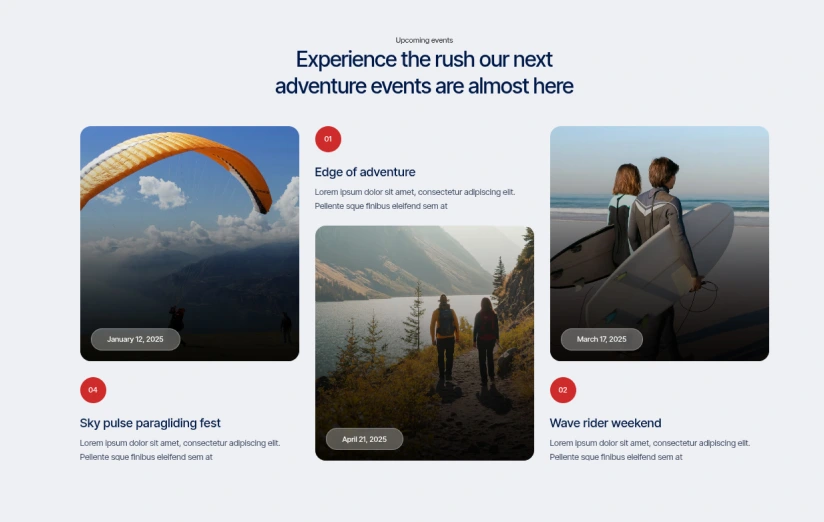 {"type":"@webflow/XscpData","payload":{"nodes":[{"_id":"e6c5ad98-24b6-6658-0dae-6cf771ce5413","type":"Section","tag":"section","classes":["c873736d-9007-c687-3f20-88aaf042062c"],"children":["673f5a79-d415-c8cd-c297-db48d96ed308"],"data":{"tag":"section","devlink":{"runtimeProps":{},"slot":""},"displayName":"","attr":{"id":""},"xattr":[],"search":{"exclude":false},"visibility":{"conditions":[]},"grid":{"type":"section"}}},{"_id":"673f5a79-d415-c8cd-c297-db48d96ed308","type":"BlockContainer","tag":"div","classes":["48550e8a-10c7-be5f-f3b3-79c549b798a4"],"children":["ea2d2b7b-0c21-c74c-38d0-bc47d79cbc84","adc56325-723b-ac0c-30f4-5cb26792ec41"],"data":{"tag":"div","devlink":{"runtimeProps":{},"slot":""},"displayName":"","attr":{"id":""},"xattr":[],"search":{"exclude":false},"visibility":{"conditions":[]},"grid":{"type":"container"}}},{"_id":"ea2d2b7b-0c21-c74c-38d0-bc47d79cbc84","type":"VFlex","tag":"div","classes":["c873736d-9007-c687-3f20-88aaf0420620","c873736d-9007-c687-3f20-88aaf042064e","c873736d-9007-c687-3f20-88aaf042065e","a4063aca-bd72-dd91-22c7-a8685edb3737"],"children":["a61e51c0-e37e-8578-2efc-69ccfa83653c","3c571e55-1378-ada3-c73a-85402a6ca5ff"],"data":{"tag":"div","devlink":{"runtimeProps":{},"slot":""},"displayName":"","attr":{"id":""},"xattr":[],"search":{"exclude":false},"visibility":{"conditions":[]}}},{"_id":"a61e51c0-e37e-8578-2efc-69ccfa83653c","type":"Block","tag":"div","classes":["852485b3-088a-555e-7643-e6242df3d1e1"],"children":["baef3090-8484-17ac-f847-fed8eef09eea"],"data":{"text":true,"tag":"div","devlink":{"runtimeProps":{},"slot":""},"displayName":"","attr":{"id":""},"xattr":[],"search":{"exclude":false},"visibility":{"conditions":[]}}},{"_id":"baef3090-8484-17ac-f847-fed8eef09eea","text":true,"v":"Upcoming events"},{"_id":"3c571e55-1378-ada3-c73a-85402a6ca5ff","type":"Block","tag":"div","classes":["06c4cfad-e369-9b53-aab3-a83afea92bd0"],"children":["4bd64021-8650-c17c-1ae7-04c9eb99f3dc"],"data":{"text":false,"tag":"div","devlink":{"runtimeProps":{},"slot":""},"displayName":"","attr":{"id":""},"xattr":[],"search":{"exclude":false},"visibility":{"conditions":[]}}},{"_id":"4bd64021-8650-c17c-1ae7-04c9eb99f3dc","type":"Heading","tag":"h2","classes":["48550e8a-10c7-be5f-f3b3-79c549b7989b"],"children":["e141cec0-15e9-f138-5c96-b65ad69e6234"],"data":{"tag":"h2","devlink":{"runtimeProps":{},"slot":""},"displayName":"","attr":{"id":""},"xattr":[],"search":{"exclude":false},"visibility":{"conditions":[]}}},{"_id":"e141cec0-15e9-f138-5c96-b65ad69e6234","text":true,"v":"Experience the rush our next adventure events are almost here"},{"_id":"adc56325-723b-ac0c-30f4-5cb26792ec41","type":"HFlex","tag":"div","classes":["ae088a10-5c5a-a04a-f6fb-d8c1c5310eb2","7e1f5026-7e93-ac76-343b-fa72f3daa854"],"children":["2aca81ca-2313-7467-ea47-541324bb8525","32abb4d9-d06e-ab97-e990-ca7d52b0c42b","5702ac45-d601-9c14-7d65-74bdb57d204a","d0bb2772-7174-8a83-4582-786656ae7d32","ac14d04f-e789-f656-be78-87535594803e","819bea05-6f55-0c57-9d35-4ae78ad1d717","c0d9a1a2-5abe-7e28-9501-005aadc6f37a","79f5a18d-d7cb-6f43-9dc4-dec7276c9d4c"],"data":{"tag":"div","devlink":{"runtimeProps":{},"slot":""},"displayName":"","attr":{"id":""},"xattr":[],"search":{"exclude":false},"visibility":{"conditions":[]}}},{"_id":"2aca81ca-2313-7467-ea47-541324bb8525","type":"Block","tag":"div","classes":["7408022d-6bc1-fba6-e1f8-eeb713f243fa"],"children":["05fabe54-7875-7e40-395d-e75424ccb9c3"],"data":{"text":false,"tag":"div","devlink":{"runtimeProps":{},"slot":""},"displayName":"","attr":{"id":""},"xattr":[],"search":{"exclude":false},"visibility":{"conditions":[]}}},{"_id":"05fabe54-7875-7e40-395d-e75424ccb9c3","type":"Block","tag":"div","classes":["ae088a10-5c5a-a04a-f6fb-d8c1c5310ec9","59729ac6-7827-7e12-fb8b-59a52c5e6a60"],"children":["0c92e7c1-6a03-9d6a-1427-0a74df8212f8"],"data":{"text":false,"tag":"div","devlink":{"runtimeProps":{},"slot":""},"displayName":"","attr":{"id":""},"xattr":[],"search":{"exclude":false},"visibility":{"conditions":[]}}},{"_id":"0c92e7c1-6a03-9d6a-1427-0a74df8212f8","type":"Link","tag":"a","classes":["c873736d-9007-c687-3f20-88aaf042061d"],"children":["1e63301a-f1b1-0c8c-92a2-c4d5520bb6d7","fa220a37-7011-5396-e0a1-7d218f39f535"],"data":{"button":false,"block":"inline","link":{"mode":"external"},"eventIds":[],"attr":{"id":""},"devlink":{"runtimeProps":{},"slot":""},"displayName":"","xattr":[],"search":{"exclude":false},"visibility":{"conditions":[]},"dyn":{"bind":{}}}},{"_id":"1e63301a-f1b1-0c8c-92a2-c4d5520bb6d7","type":"VFlex","tag":"div","classes":["c873736d-9007-c687-3f20-88aaf0420618"],"children":["0d7022ed-af21-e0ef-e0a5-b25949d11ef0","46178926-fc48-56a3-ce51-a23193b70039","b8b9a331-e0f8-bee9-44f6-e68c1204d3bb"],"data":{"tag":"div","devlink":{"runtimeProps":{},"slot":""},"displayName":"","attr":{"id":""},"xattr":[],"search":{"exclude":false},"visibility":{"conditions":[]}}},{"_id":"0d7022ed-af21-e0ef-e0a5-b25949d11ef0","type":"VFlex","tag":"div","classes":["c873736d-9007-c687-3f20-88aaf0420635","c873736d-9007-c687-3f20-88aaf042063c","c873736d-9007-c687-3f20-88aaf042065c"],"children":["d47e9432-baae-0878-a682-84e0d1e0848c"],"data":{"tag":"div","devlink":{"runtimeProps":{},"slot":""},"displayName":"","attr":{"id":""},"xattr":[],"search":{"exclude":false},"visibility":{"conditions":[]}}},{"_id":"d47e9432-baae-0878-a682-84e0d1e0848c","type":"Block","tag":"div","classes":["852485b3-088a-555e-7643-e6242df3d1e1","852485b3-088a-555e-7643-e6242df3d270"],"children":["b98fd21f-ae1e-8a94-4c33-02d1a35f1caa"],"data":{"text":true,"tag":"div","devlink":{"runtimeProps":{},"slot":""},"displayName":"","attr":{"id":""},"xattr":[],"search":{"exclude":false},"visibility":{"conditions":[]}}},{"_id":"b98fd21f-ae1e-8a94-4c33-02d1a35f1caa","text":true,"v":"01"},{"_id":"46178926-fc48-56a3-ce51-a23193b70039","type":"Block","tag":"div","classes":["48550e8a-10c7-be5f-f3b3-79c549b798b4"],"children":["22be06d3-c4c0-2026-4e26-c5acdddf9c19"],"data":{"text":true,"tag":"div","devlink":{"runtimeProps":{},"slot":""},"di