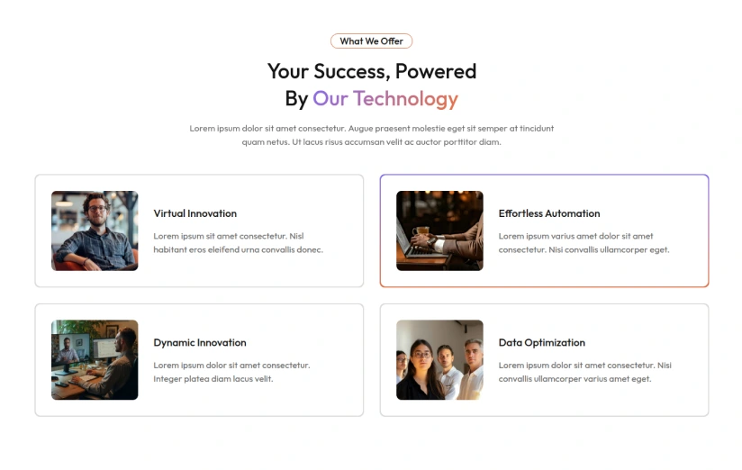 {"type":"@webflow/XscpData","payload":{"nodes":[{"_id":"c361da37-72c4-d1a0-50fb-e810e4ee6ed6","type":"Section","tag":"section","classes":["13990fe6-8d31-6ca5-3d96-44093af55aad"],"children":["a6487fbe-a60e-b028-926f-d776c57598f0"],"data":{"tag":"section","devlink":{"runtimeProps":{},"slot":""},"displayName":"","attr":{"id":""},"xattr":[],"search":{"exclude":false},"visibility":{"conditions":[]},"grid":{"type":"section"}}},{"_id":"a6487fbe-a60e-b028-926f-d776c57598f0","type":"BlockContainer","tag":"div","classes":["5a48c641-300b-a2a1-cd63-4263ad714bd0"],"children":["b49c7cba-765d-a646-e3cc-7ecc37a6663c","38563488-f0c0-7114-c2bf-d4acedd092a5"],"data":{"tag":"div","devlink":{"runtimeProps":{},"slot":""},"displayName":"","attr":{"id":""},"xattr":[],"search":{"exclude":false},"visibility":{"conditions":[]},"grid":{"type":"container"}}},{"_id":"b49c7cba-765d-a646-e3cc-7ecc37a6663c","type":"VFlex","tag":"div","classes":["13990fe6-8d31-6ca5-3d96-44093af55ab8","13990fe6-8d31-6ca5-3d96-44093af55adf","d0a703a4-dbb9-2804-096c-5c957c11d681"],"children":["c389b7c1-6589-a3fa-786d-8dc282525520","14f2ac0c-f206-a4fa-6546-72502906eb84","3c7d9061-94f8-83c8-245b-9046c952cfd7"],"data":{"tag":"div","devlink":{"runtimeProps":{},"slot":""},"displayName":"","attr":{"id":""},"xattr":[],"search":{"exclude":false},"visibility":{"conditions":[]}}},{"_id":"c389b7c1-6589-a3fa-786d-8dc282525520","type":"Block","tag":"div","classes":["5a48c641-300b-a2a1-cd63-4263ad714b94","5a48c641-300b-a2a1-cd63-4263ad714c15"],"children":["fca43c85-ae9d-a26c-3c17-e22ec7b4ec12"],"data":{"text":false,"tag":"div","devlink":{"runtimeProps":{},"slot":""},"displayName":"","attr":{"id":""},"xattr":[],"search":{"exclude":false},"visibility":{"conditions":[]}}},{"_id":"fca43c85-ae9d-a26c-3c17-e22ec7b4ec12","type":"Block","tag":"div","classes":["5a48c641-300b-a2a1-cd63-4263ad714bc6"],"children":["cd864890-fe0c-a361-0d0c-52d613998dfd"],"data":{"text":true,"tag":"div","devlink":{"runtimeProps":{},"slot":""},"displayName":"","attr":{"id":""},"xattr":[],"search":{"exclude":false},"visibility":{"conditions":[]}}},{"_id":"cd864890-fe0c-a361-0d0c-52d613998dfd","text":true,"v":"What We Offer"},{"_id":"14f2ac0c-f206-a4fa-6546-72502906eb84","type":"Block","tag":"div","classes":["5a48c641-300b-a2a1-cd63-4263ad714b85","13990fe6-8d31-6ca5-3d96-44093af55af0","6d04a819-17ff-098b-e51e-682c6a75df79"],"children":["5bfb6e48-e9ca-8147-dcb2-b5e9e71b81af"],"data":{"text":false,"tag":"div","devlink":{"runtimeProps":{},"slot":""},"displayName":"","attr":{"id":""},"xattr":[],"search":{"exclude":false},"visibility":{"conditions":[]}}},{"_id":"5bfb6e48-e9ca-8147-dcb2-b5e9e71b81af","type":"Heading","tag":"h2","classes":["5a48c641-300b-a2a1-cd63-4263ad714b8f"],"children":["25e82e01-c25b-b455-3625-0b73a498645e","1d7b615c-836c-d8c8-4d52-e5eb13aa942a"],"data":{"tag":"h2","devlink":{"runtimeProps":{},"slot":""},"displayName":"","attr":{"id":""},"xattr":[],"search":{"exclude":false},"visibility":{"conditions":[]}}},{"_id":"25e82e01-c25b-b455-3625-0b73a498645e","text":true,"v":"Your Success, Powered by "},{"_id":"1d7b615c-836c-d8c8-4d52-e5eb13aa942a","type":"Span","tag":"span","classes":["da9a30b8-3770-f4d6-78e4-2f03aa35ca8e"],"children":["81426b59-a707-8818-4b43-6200da8ae14f"],"data":{"devlink":{"runtimeProps":{},"slot":""},"displayName":"","attr":{"id":""},"xattr":[],"search":{"exclude":false},"visibility":{"conditions":[]}}},{"_id":"81426b59-a707-8818-4b43-6200da8ae14f","text":true,"v":"Our Technology"},{"_id":"3c7d9061-94f8-83c8-245b-9046c952cfd7","type":"Paragraph","tag":"p","classes":["5a48c641-300b-a2a1-cd63-4263ad714b8f"],"children":["a5f5da54-024f-3f70-9f88-a7db5eaa1b83"],"data":{"devlink":{"runtimeProps":{},"slot":""},"displayName":"","attr":{"id":""},"xattr":[],"search":{"exclude":false},"visibility":{"conditions":[]}}},{"_id":"a5f5da54-024f-3f70-9f88-a7db5eaa1b83","text":true,"v":"Lorem ipsum dolor sit amet consectetur. Augue praesent molestie eget sit semper at tincidunt quam netus. Ut lacus risus accumsan velit ac auctor porttitor diam."},{"_id":"38563488-f0c0-7114-c2bf-d4acedd092a5","type":"Grid","tag":"div","classes":["13990fe6-8d31-6ca5-3d96-44093af55aa2"],"children":["98effa62-921e-64dc-fee7-f591ee1cea0f","2ffcb6f8-54c7-b08b-515b-33f24342048d","921584ef-b7d8-e10b-aa49-1fee1a2f08d6","5616e8ad-10ee-7332-691c-a770b454fd8b"],"data":{"devlink":{"runtimeProps":{},"slot":""},"displayName":"","attr":{"id":""},"xattr":[],"search":{"exclude":false},"visibility":{"conditions":[]},"tag":"div","grid":"two-by-two"}},{"_id":"98effa62-921e-64dc-fee7-f591ee1cea0f","type":"Block","tag":"div","classes":["13990fe6-8d31-6ca5-3d96-44093af55aaf","13990fe6-8d31-6ca5-3d96-44093af55af8","13990fe6-8d31-6ca5-3d96-44093af55aff","047ebfa3-ccd8-3314-64fd-02d1d6081f9b"],"children":["65cff179-bcf1-a034-d640-899478c1115c","98c5d8e9-cfcf-c9d5-5325-dba8c4c4bac8"],"data":{"text":false,"tag":"div","devlink":{"runtimeProps":{},"slot":""},"displayName":"","attr":{"id":""},"xattr":[],"search":{"exclude":false},"visibility":{"conditions":[]},"style":{"base":{"main":{"noPseudo":{}}}}}},{"_id":"65cff179-bcf1-a034-d640-899478c1115c","type":"HFlex","tag":"div","classes":["13990fe6-8d31-6ca5-3d96-44093af55aa3","13990fe6-8d31-6ca5-3d96-44093af55ada","13990fe6-8d31-6ca5-3d96-44093af55b01"],"children":["89078d71-4492-ff11-8f2f-1307e0c84b23","4b7fb01d-02d3-d1aa-baf4-9fe46d3bbe01"],"data":{"tag":"div","devlink":{"runtimeProps":{},"slot":""},"displayName":"","attr":{"id":""},"xattr":[],"search":{"exclude":false},"visibility":{"conditions":[]},"style":{"base":{"main":{"noPseudo":{}}}}}},{"_id":"89078d71-4492-ff11-8f2f-1307e0c84b23","type":"Block","tag":"div","classes":["13990fe6-8d31-6ca5-3d96-44093af55ac5"],"children":["b1b844cc-f336-9100-f973-8e02b1b27dcf"],"data":{"text":false,"tag":"div","devlink":{"runtimeProps":{},"slot":""},"displayName":"","attr":{"id":""},"xattr":[],"search":{"exclude":false},"visibility":{"conditions":[]}}},{"_id":"b1b844cc-f336-9100-f973-8e02b1b27dcf","type":"Image","tag":"img","classes":[