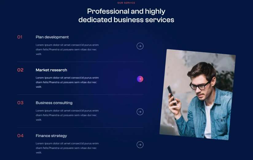 {"type":"@webflow/XscpData","payload":{"nodes":[{"_id":"a7684960-0e35-dadd-aebc-d4e55bec345e","type":"Section","tag":"section","classes":["762380d5-803f-bbbd-af1c-bc530b15753d"],"children":["58bf10a8-9201-2a96-9820-2b0d04e06af4"],"data":{"tag":"section","devlink":{"runtimeProps":{},"slot":""},"displayName":"","attr":{"id":""},"xattr":[],"search":{"exclude":false},"visibility":{"conditions":[]},"grid":{"type":"section"}}},{"_id":"58bf10a8-9201-2a96-9820-2b0d04e06af4","type":"BlockContainer","tag":"div","classes":["17550f05-8ebe-9a91-d34b-157db1ad1067"],"children":["9a9d4e11-71d0-afe6-c49b-cf540e78c384"],"data":{"tag":"div","devlink":{"runtimeProps":{},"slot":""},"displayName":"","attr":{"id":""},"xattr":[],"search":{"exclude":false},"visibility":{"conditions":[]},"grid":{"type":"container"}}},{"_id":"9a9d4e11-71d0-afe6-c49b-cf540e78c384","type":"VFlex","tag":"div","classes":["c0c09361-c06b-60a8-d6ec-69add1858b7d"],"children":["1d040777-a009-ebc0-22cf-3288a4d0b272","47fdbfbd-f33d-80cb-0a7e-293ac01d74b2"],"data":{"tag":"div","devlink":{"runtimeProps":{},"slot":""},"displayName":"","attr":{"id":""},"xattr":[],"search":{"exclude":false},"visibility":{"conditions":[]}}},{"_id":"1d040777-a009-ebc0-22cf-3288a4d0b272","type":"VFlex","tag":"div","classes":["81454e1f-4f65-4ad6-f13b-608143e12d3a","b5039776-fff7-6774-8d47-f326c7f6fc2a"],"children":["66f97d48-1bff-2900-4f23-0b5794a9e31d","84b33505-5352-ec11-9078-ce6eb9609179"],"data":{"tag":"div","devlink":{"runtimeProps":{},"slot":""},"displayName":"","attr":{"id":""},"xattr":[],"search":{"exclude":false},"visibility":{"conditions":[]}}},{"_id":"66f97d48-1bff-2900-4f23-0b5794a9e31d","type":"Block","tag":"div","classes":[],"children":["2e44f134-b434-5c51-c4cb-2a8a4d3ea087"],"data":{"text":false,"tag":"div","devlink":{"runtimeProps":{},"slot":""},"displayName":"","attr":{"id":""},"xattr":[],"search":{"exclude":false},"visibility":{"conditions":[]}}},{"_id":"2e44f134-b434-5c51-c4cb-2a8a4d3ea087","type":"Block","tag":"div","classes":["17550f05-8ebe-9a91-d34b-157db1ad108f","37da611d-d1a5-6edf-58b2-8a43e80427f7"],"children":["a8b13492-e840-cf5f-dfa1-18ad38ac7de0"],"data":{"text":true,"tag":"div","devlink":{"runtimeProps":{},"slot":""},"displayName":"","attr":{"id":""},"xattr":[],"search":{"exclude":false},"visibility":{"conditions":[]}}},{"_id":"a8b13492-e840-cf5f-dfa1-18ad38ac7de0","text":true,"v":"Our Service"},{"_id":"84b33505-5352-ec11-9078-ce6eb9609179","type":"Heading","tag":"h2","classes":["0c993c63-c182-d69e-c912-647a5074afac","fa6f3c33-8b09-1eda-8faa-d9e8e2fe12c9"],"children":["cabc7a44-0ac6-e49d-ee00-9b8f0fabad1d"],"data":{"tag":"h2","devlink":{"runtimeProps":{},"slot":""},"displayName":"","attr":{"id":""},"xattr":[],"search":{"exclude":false},"visibility":{"conditions":[]}}},{"_id":"cabc7a44-0ac6-e49d-ee00-9b8f0fabad1d","text":true,"v":"Professional and highly dedicated business services"},{"_id":"47fdbfbd-f33d-80cb-0a7e-293ac01d74b2","type":"HFlex","tag":"div","classes":["b97492ab-7e7f-fd48-ccfc-4cbbea64e953","f252646f-adaf-665e-a1e8-f29e6ef87689"],"children":["2dc4e20c-099a-ce68-0c61-f60f125d8f3b","b271c680-ca9e-3e86-1cb0-29bffedf4202"],"data":{"tag":"div","devlink":{"runtimeProps":{},"slot":""},"displayName":"","attr":{"id":""},"xattr":[],"search":{"exclude":false},"visibility":{"conditions":[]}}},{"_id":"2dc4e20c-099a-ce68-0c61-f60f125d8f3b","type":"VFlex","tag":"div","classes":["035828a7-f512-9408-6d57-70e642f3f35d"],"children":["759e95e4-3d57-732c-2258-46636f289a08","c5fc3591-96df-3b3e-ed37-21310f20e87a","495c0a86-5f25-be8b-7cb9-fb453fa1ffe1","ec72192f-8a0d-6c63-a42d-e126891a363b"],"data":{"tag":"div","devlink":{"runtimeProps":{},"slot":""},"displayName":"","attr":{"id":""},"xattr":[],"search":{"exclude":false},"visibility":{"conditions":[]}}},{"_id":"759e95e4-3d57-732c-2258-46636f289a08","type":"Link","tag":"a","classes":["c85ceb56-b8f8-2b63-f11a-b72e10a4d557"],"children":["0cd72cb1-e52b-cd89-251b-0e442ac88e1d","9a9f4f5f-6361-4527-9e48-5220e5d82cc3"],"data":{"button":false,"block":"inline","link":{"mode":"external"},"eventIds":[],"attr":{"id":""},"devlink":{"runtimeProps":{},"slot":""},"displayName":"","xattr":[],"search":{"exclude":false},"visibility":{"conditions":[]},"dyn":{"bind":{}}}},{"_id":"0cd72cb1-e52b-cd89-251b-0e442ac88e1d","type":"HFlex","tag":"div","classes":["d116e29c-cd51-efaf-c5fe-3cbd2e7909d3"],"children":["241d2d5a-ab34-2d6a-8ddb-2109875ecbf0","4187046a-2722-16f2-27ea-5f98d34216a8"],"data":{"tag":"div","devlink":{"runtimeProps":{},"slot":""},"displayName":"","attr":{"id":""},"xattr":[],"search":{"exclude":false},"visibility":{"conditions":[]}}},{"_id":"241d2d5a-ab34-2d6a-8ddb-2109875ecbf0","type":"Block","tag":"div","classes":["17550f05-8ebe-9a91-d34b-157db1ad1096","3c8c7dcb-d6f6-2c95-e5eb-9b62e5d26c8d","5df5e9d1-06c4-93e2-ed0a-fcfff6fc973f"],"children":["2ead9326-7c8b-4b35-5d11-c189ee719e39"],"data":{"text":true,"tag":"div","devlink":{"runtimeProps":{},"slot":""},"displayName":"","attr":{"id":""},"xattr":[],"search":{"exclude":false},"visibility":{"conditions":[]}}},{"_id":"2ead9326-7c8b-4b35-5d11-c189ee719e39","text":true,"v":"01"},{"_id":"4187046a-2722-16f2-27ea-5f98d34216a8","type":"VFlex","tag":"div","classes":["c75e23b6-cfec-0e78-2135-5fdb7aea3f13"],"children":["211151ef-cc36-6de6-4660-7dfd061e30fc","7c47e366-6b33-8691-66cd-924833caeb45"],"data":{"tag":"div","devlink":{"runtimeProps":{},"slot":""},"displayName":"","attr":{"id":""},"xattr":[],"search":{"exclude":false},"visibility":{"conditions":[]}}},{"_id":"211151ef-cc36-6de6-4660-7dfd061e30fc","type":"Block","tag":"div","classes":["17550f05-8ebe-9a91-d34b-157db1ad10a1","2687e6b9-9b7c-99bc-9929-2bacd5e91665","c4fcdb6e-1e01-2c41-c4b0-108f619ce542"],"children":["695b1f51-a103-9c02-db50-0364b5ff21b4"],"data":{"text":true,"tag":"div","devlink":{"runtimeProps":{},"slot":""},"displayName":"","attr":{"id":""},"xattr":[],"search":{"exclude":false},"visibility":{"conditions":[]}}},{"_id":"695b1f51-a103-9c02-db50-0364b5ff21b4","text":true,"v":"Title"},{"_id":"7c47e366-6b33-