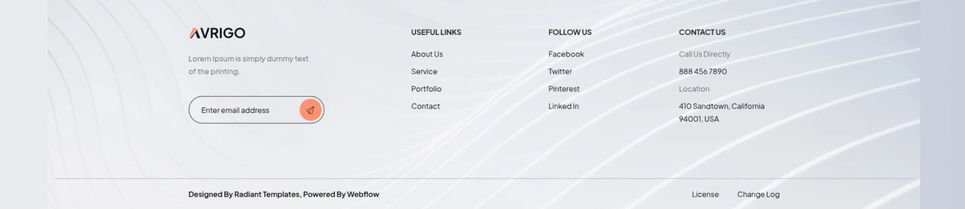 {"type":"@webflow/XscpData","payload":{"nodes":[{"_id":"0caf9fd5-54e9-9373-42a2-093457958344","type":"Section","tag":"footer","classes":["9f3a7253-4527-452c-68df-8185f97ecd89"],"children":["99300889-790f-210d-bc06-c6abea438022","7b84a39d-12b2-64eb-37e8-7cc816ca5dc7","d18da2f0-2e2a-62fe-9baa-e070ca04ccae","716520fd-e58c-6def-a17f-3040a56a5414"],"data":{"tag":"footer","devlink":{"runtimeProps":{},"slot":""},"displayName":"","attr":{"id":""},"xattr":[],"search":{"exclude":false},"visibility":{"conditions":[]},"grid":{"type":"section"}}},{"_id":"99300889-790f-210d-bc06-c6abea438022","type":"Block","tag":"div","classes":["e8339f88-7207-033a-ed94-91a6cd4f98e0"],"children":[],"data":{"text":false,"tag":"div","devlink":{"runtimeProps":{},"slot":""},"displayName":"","attr":{"id":""},"xattr":[],"search":{"exclude":false},"visibility":{"conditions":[]}}},{"_id":"7b84a39d-12b2-64eb-37e8-7cc816ca5dc7","type":"Block","tag":"div","classes":["49f1e1f5-8660-8f10-2e85-6cb0497bd260"],"children":["be0d5d6e-b5a3-1de7-698a-027a5fd9984d"],"data":{"text":false,"tag":"div","devlink":{"runtimeProps":{},"slot":""},"displayName":"","attr":{"id":""},"xattr":[],"search":{"exclude":false},"visibility":{"conditions":[]}}},{"_id":"be0d5d6e-b5a3-1de7-698a-027a5fd9984d","type":"Block","tag":"div","classes":["dbd9a774-75d4-0f9d-a969-8c272325e425"],"children":["ce0a97a7-7544-d129-c1be-5b1cbf5346c6","b263f5c9-9ba6-0c55-d181-fddcd64fbb7d","e3f4ada3-a13a-8fc9-b5e7-b94cf28951bb","49a28dcd-abf4-de25-1225-1b84f93ed0fb"],"data":{"text":false,"tag":"div","devlink":{"runtimeProps":{},"slot":""},"displayName":"","attr":{"id":""},"xattr":[],"search":{"exclude":false},"visibility":{"conditions":[]}}},{"_id":"ce0a97a7-7544-d129-c1be-5b1cbf5346c6","type":"Block","tag":"div","classes":["dc4c7e8d-1fdd-1b92-f261-8efef26cfa2a"],"children":["782993c3-b15a-e955-0e3f-26bcffe7de20","c26ea869-6822-5351-3953-062e7414c2f3","2a038328-89c2-07e6-775b-5495d48781c9"],"data":{"text":false,"tag":"div","devlink":{"runtimeProps":{},"slot":""},"displayName":"","attr":{"id":""},"xattr":[],"search":{"exclude":false},"visibility":{"conditions":[]}}},{"_id":"782993c3-b15a-e955-0e3f-26bcffe7de20","type":"Block","tag":"div","classes":["9a3f34d0-34e0-0430-db5c-461a1db411e7"],"children":["14d539e8-4e8d-89b6-cf6b-119f0194eb3e"],"data":{"text":false,"tag":"div","devlink":{"runtimeProps":{},"slot":""},"displayName":"","attr":{"id":""},"xattr":[],"search":{"exclude":false},"visibility":{"conditions":[]}}},{"_id":"14d539e8-4e8d-89b6-cf6b-119f0194eb3e","type":"Image","tag":"img","classes":[],"children":[],"data":{"img":{"id":"66e935babb25ef660e1a6292"},"srcsetDisabled":false,"attr":{"width":"135","height":"24","alt":"__wf_reserved_inherit","src":"https://cdn.prod.website-files.com/66e935babb25ef660e1a6241/66e935babb25ef660e1a6292_Avrigo.svg","loading":"lazy","id":""},"sizes":[],"devlink":{"runtimeProps":{},"slot":""},"displayName":"","xattr":[],"search":{"exclude":false},"visibility":{"conditions":[]}}},{"_id":"c26ea869-6822-5351-3953-062e7414c2f3","type":"Block","tag":"div","classes":["222c6064-f02d-4f25-e5dd-414ba3c68197","a74b765e-eb18-9e41-8c97-5d0c8052f3f2"],"children":["259796bd-3c54-e489-7419-14a640e8d7d5"],"data":{"text":false,"tag":"div","devlink":{"runtimeProps":{},"slot":""},"displayName":"","attr":{"id":""},"xattr":[],"search":{"exclude":false},"visibility":{"conditions":[]}}},{"_id":"259796bd-3c54-e489-7419-14a640e8d7d5","type":"Paragraph","tag":"p","classes":["88d068a2-1562-ddcf-0c20-5bf51c89bf06","bcc5d2df-7e98-35c9-f40d-1f961546f9ff"],"children":["5f223751-3776-63e7-6cc5-57ff68812f30"],"data":{"devlink":{"runtimeProps":{},"slot":""},"displayName":"","attr":{"id":""},"xattr":[],"search":{"exclude":false},"visibility":{"conditions":[]}}},{"_id":"5f223751-3776-63e7-6cc5-57ff68812f30","text":true,"v":"Lorem Ipsum is simply dummy text of the printing."},{"_id":"2a038328-89c2-07e6-775b-5495d48781c9","type":"Block","tag":"div","classes":[],"children":["2460fa9d-10c4-c6ab-3cd5-9b756da98c9a"],"data":{"text":false,"tag":"div","devlink":{"runtimeProps":{},"slot":""},"displayName":"","attr":{"id":""},"xattr":[],"search":{"exclude":false},"visibility":{"conditions":[]}}},{"_id":"2460fa9d-10c4-c6ab-3cd5-9b756da98c9a","type":"FormWrapper","tag":"div","classes":[],"children":["b1ddd9ed-a846-9072-4c33-c4f6b38ecfea","b70f2a07-3f99-37dc-4fdc-f435a0e72baa","54497fbc-5f2b-3f7a-ebf8-24cb597c32c4"],"data":{"search":{"exclude":true},"form":{"type":"wrapper"},"devlink":{"runtimeProps":{},"slot":""},"displayName":"","attr":{"id":""},"xattr":[],"visibility":{"conditions":[]}}},{"_id":"b1ddd9ed-a846-9072-4c33-c4f6b38ecfea","type":"FormForm","tag":"form","classes":[],"children":["b8468d65-743c-3563-4efd-fd83d7de8029"],"data":{"Source":{"tag":"Default form","val":{}},"form":{"type":"form","name":"Email Form"},"attr":{"id":"email-form","name":"email-form","data-name":"Email Form","redirect":"","data-redirect":"","action":"","method":"get"},"devlink":{"runtimeProps":{},"slot":""},"displayName":"","xattr":[],"search":{"exclude":false},"visibility":{"conditions":[]}}},{"_id":"b8468d65-743c-3563-4efd-fd83d7de8029","type":"Block","tag":"div","classes":["833656ca-7885-ad99-3a6d-ffa4854a3020"],"children":["464f7ff3-4c50-73bc-2ba4-9713b8a01572","facd933a-62ad-d06d-b0df-506f941f68d9"],"data":{"text":false,"tag":"div","devlink":{"runtimeProps":{},"slot":""},"displayName":"","attr":{"id":""},"xattr":[],"search":{"exclude":false},"visibility":{"conditions":[]}}},{"_id":"464f7ff3-4c50-73bc-2ba4-9713b8a01572","type":"FormTextInput","tag":"input","classes":["7e3148ae-a6f7-6af9-536e-8bf66a7dd7a6"],"children":[],"data":{"form":{"name":"Email","type":"input","passwordPage":false},"attr":{"id":"email","name":"email","maxlength":256,"data-name":"Email","placeholder":"Enter email address","disabled":false,"type":"email","required":true,"autofocus":false},"devlink":{"runtimeProps":{},"slot":""},"displayName":"","xattr":[],"search":{"exclude":false},"visibility":{"conditions":[]}}},{"_id":"facd933a-62ad-d06d-
