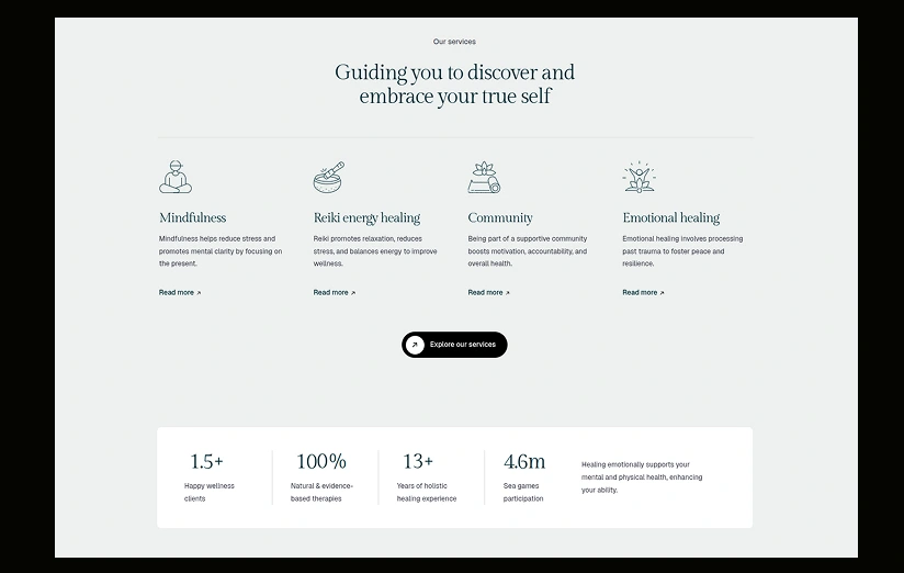 {"type":"@webflow/XscpData","payload":{"nodes":[{"_id":"1bec382c-a26d-f867-0bb1-86e157f3fdf0","type":"Section","tag":"section","classes":["13ac5675-b535-d41e-ca9e-93ff7ea000e1","13ac5675-b535-d41e-ca9e-93ff7ea000f6"],"children":["6e6a636b-e2e3-2296-4061-c057451bbe9a"],"data":{"tag":"section","devlink":{"runtimeProps":{},"slot":""},"displayName":"","attr":{"id":""},"xattr":[],"search":{"exclude":false},"visibility":{"conditions":[]},"grid":{"type":"section"}}},{"_id":"6e6a636b-e2e3-2296-4061-c057451bbe9a","type":"BlockContainer","tag":"div","classes":["eb85b74e-b637-f4fe-859c-04fa936bf712"],"children":["e1fdc4ec-4c51-2e5e-f5a7-f406b2d41258","b677b27e-3fae-d50f-97ef-2f64b8d178f3","61e1cfa4-5bc6-300c-22e9-de95370247a6"],"data":{"tag":"div","devlink":{"runtimeProps":{},"slot":""},"displayName":"","attr":{"id":""},"xattr":[],"search":{"exclude":false},"visibility":{"conditions":[]},"grid":{"type":"container"}}},{"_id":"e1fdc4ec-4c51-2e5e-f5a7-f406b2d41258","type":"Block","tag":"div","classes":["13ac5675-b535-d41e-ca9e-93ff7ea000d9"],"children":["a1c705b0-6a58-5c62-3c67-1b8b8bccb2ad","3404c563-1aa6-3a77-bf57-dd635959eda0","2bbd50c3-d6b9-250f-0527-224b926ade3b","8269d3ff-92fc-fdbb-006a-5ba1f64192bf"],"data":{"text":false,"tag":"div","devlink":{"runtimeProps":{},"slot":""},"displayName":"","attr":{"id":""},"xattr":[],"search":{"exclude":false},"visibility":{"conditions":[]}}},{"_id":"a1c705b0-6a58-5c62-3c67-1b8b8bccb2ad","type":"Block","tag":"div","classes":["bd6fe006-1f06-26da-88fd-9b8c50fd6af1","bd6fe006-1f06-26da-88fd-9b8c50fd6b02"],"children":["99046a00-4f3d-c2fd-8226-a3523fd0ab31"],"data":{"text":true,"tag":"div","devlink":{"runtimeProps":{},"slot":""},"displayName":"","attr":{"id":""},"xattr":[],"search":{"exclude":false},"visibility":{"conditions":[]}}},{"_id":"99046a00-4f3d-c2fd-8226-a3523fd0ab31","text":true,"v":"Our services"},{"_id":"3404c563-1aa6-3a77-bf57-dd635959eda0","type":"Block","tag":"div","classes":["13ac5675-b535-d41e-ca9e-93ff7ea000ee","13ac5675-b535-d41e-ca9e-93ff7ea000f9","13ac5675-b535-d41e-ca9e-93ff7ea00100"],"children":["bb7a3112-cf90-d4c7-96d9-b14ecdcd84dc"],"data":{"text":false,"tag":"div","devlink":{"runtimeProps":{},"slot":""},"displayName":"","attr":{"id":""},"xattr":[],"search":{"exclude":false},"visibility":{"conditions":[]}}},{"_id":"bb7a3112-cf90-d4c7-96d9-b14ecdcd84dc","type":"Heading","tag":"h2","classes":["eb85b74e-b637-f4fe-859c-04fa936bf707"],"children":["b7a0807b-0318-ee61-3603-f004e0512489"],"data":{"tag":"h2","devlink":{"runtimeProps":{},"slot":""},"displayName":"","attr":{"id":""},"xattr":[],"search":{"exclude":false},"visibility":{"conditions":[]}}},{"_id":"b7a0807b-0318-ee61-3603-f004e0512489","text":true,"v":"Guiding you to discover and embrace your true self"},{"_id":"2bbd50c3-d6b9-250f-0527-224b926ade3b","type":"Block","tag":"div","classes":["13ac5675-b535-d41e-ca9e-93ff7ea000e5"],"children":["dc2f5a3f-27f6-ba57-05b6-7865fdb2404a","feb9635f-20d0-871a-10f7-44bfd0b76cc6","a4c00bb2-417a-af4e-538d-7781a76169d9","85f97a2c-4164-763c-0625-88fcea2b86f5"],"data":{"text":false,"tag":"div","devlink":{"runtimeProps":{},"slot":""},"displayName":"","attr":{"id":""},"xattr":[],"search":{"exclude":false},"visibility":{"conditions":[]}}},{"_id":"dc2f5a3f-27f6-ba57-05b6-7865fdb2404a","type":"Block","tag":"div","classes":["13ac5675-b535-d41e-ca9e-93ff7ea000e0","13ac5675-b535-d41e-ca9e-93ff7ea000fe"],"children":["ed2081f8-7e2a-c6f2-a55a-bdfe2c6e8000","b82075e5-d583-3cfe-762a-92fd01590ab1"],"data":{"text":false,"tag":"div","devlink":{"runtimeProps":{},"slot":""},"displayName":"","attr":{"id":""},"xattr":[],"search":{"exclude":false},"visibility":{"conditions":[]}}},{"_id":"ed2081f8-7e2a-c6f2-a55a-bdfe2c6e8000","type":"VFlex","tag":"div","classes":["13ac5675-b535-d41e-ca9e-93ff7ea000e4"],"children":["1bda53c3-3e4c-647a-4c2d-9aa9d3b5a6f1","87dfd57b-dc43-ceda-f355-4a2d6ddfb942"],"data":{"tag":"div","devlink":{"runtimeProps":{},"slot":""},"displayName":"","attr":{"id":""},"xattr":[],"search":{"exclude":false},"visibility":{"conditions":[]}}},{"_id":"1bda53c3-3e4c-647a-4c2d-9aa9d3b5a6f1","type":"VFlex","tag":"div","classes":["13ac5675-b535-d41e-ca9e-93ff7ea000f0"],"children":["ca7fa2e3-2126-8fa0-11db-7829792e98d6","9e536892-dfc0-ebe6-314d-ce931f676fd2"],"data":{"tag":"div","devlink":{"runtimeProps":{},"slot":""},"displayName":"","attr":{"id":""},"xattr":[],"search":{"exclude":false},"visibility":{"conditions":[]}}},{"_id":"ca7fa2e3-2126-8fa0-11db-7829792e98d6","type":"Image","tag":"img","classes":[],"children":[],"data":{"img":{"id":"68be9914eb7151186f6346ee"},"srcsetDisabled":false,"attr":{"width":"70","height":"70","alt":"__wf_reserved_inherit","src":"https://cdn.prod.website-files.com/68be90dab82e6ba640669991/68be9914eb7151186f6346ee_Service%201.svg","loading":"auto","id":""},"sizes":[],"devlink":{"runtimeProps":{},"slot":""},"displayName":"","xattr":[],"search":{"exclude":false},"visibility":{"conditions":[]}}},{"_id":"9e536892-dfc0-ebe6-314d-ce931f676fd2","type":"Block","tag":"div","classes":["eb85b74e-b637-f4fe-859c-04fa936bf715"],"children":["d746faf7-c760-b57e-0cbd-dc382ea25c3e"],"data":{"text":false,"tag":"div","devlink":{"runtimeProps":{},"slot":""},"displayName":"","attr":{"id":""},"xattr":[],"search":{"exclude":false},"visibility":{"conditions":[]}}},{"_id":"d746faf7-c760-b57e-0cbd-dc382ea25c3e","type":"Block","tag":"div","classes":["13ac5675-b535-d41e-ca9e-93ff7ea000e6"],"children":["66146fe1-9679-356b-5b1d-4dc559b4fdc9"],"data":{"text":true,"tag":"div","devlink":{"runtimeProps":{},"slot":""},"displayName":"","attr":{"id":""},"xattr":[],"search":{"exclude":false},"visibility":{"conditions":[]}}},{"_id":"66146fe1-9679-356b-5b1d-4dc559b4fdc9","text":true,"v":"Mindfulness"},{"_id":"87dfd57b-dc43-ceda-f355-4a2d6ddfb942","type":"Block","tag":"div","classes":[],"children":["73a01343-0185-1380-4411-182a5c53dcaf"],"data":{"text":true,"tag":"div","devlink":{"runtimeProps":{},"slot":""},"displayName":"","attr":{"id":""},"xattr":[],"search":{"exclude":false},"visibility