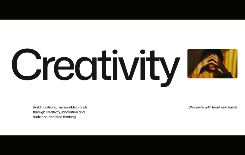 {"type":"@webflow/XscpData","payload":{"nodes":[{"_id":"0034c4b9-3e5c-ab42-f2d8-0a6342105d5c","type":"Section","tag":"section","classes":["4b0a063b-8a2b-724d-8e99-76dd1a110bce","fa7454e4-a3ac-68c3-fd8c-4fb045d8400e"],"children":["1af8a7d4-cbd4-3f65-7a77-62b4d180fe36"],"data":{"tag":"section","devlink":{"runtimeProps":{},"slot":""},"displayName":"","attr":{"id":""},"xattr":[],"search":{"exclude":false},"visibility":{"conditions":[]},"grid":{"type":"section"}}},{"_id":"1af8a7d4-cbd4-3f65-7a77-62b4d180fe36","type":"BlockContainer","tag":"div","classes":["932e61c5-e340-b5fe-4b87-22d0549bfe1d"],"children":["ac710db3-ad5c-d4c7-b60f-a7a9fb43b5a1"],"data":{"tag":"div","devlink":{"runtimeProps":{},"slot":""},"displayName":"","attr":{"id":""},"xattr":[],"search":{"exclude":false},"visibility":{"conditions":[]},"grid":{"type":"container"}}},{"_id":"ac710db3-ad5c-d4c7-b60f-a7a9fb43b5a1","type":"Block","tag":"div","classes":["5f7d411b-8892-249a-452d-e1290e0e2f6c"],"children":["752205ae-414e-3cc8-e9ea-9eddcccfe7f4","152ef8aa-c0db-4d32-4d86-4c0edaa391c5","28dc18f0-b618-0fee-7fa0-9a5bbece2040"],"data":{"text":false,"tag":"div","devlink":{"runtimeProps":{},"slot":""},"displayName":"","attr":{"id":""},"xattr":[],"search":{"exclude":false},"visibility":{"conditions":[]}}},{"_id":"752205ae-414e-3cc8-e9ea-9eddcccfe7f4","type":"HFlex","tag":"div","classes":["484631c7-f645-46c9-944b-f04d556a4ce5","8c16f0c5-f0da-fa35-765a-c22bd59fb4ce"],"children":["b8ba887d-aa8b-bf2e-d3af-335d52cec078"],"data":{"tag":"div","devlink":{"runtimeProps":{},"slot":""},"displayName":"","attr":{"id":""},"xattr":[],"search":{"exclude":false},"visibility":{"conditions":[]}}},{"_id":"b8ba887d-aa8b-bf2e-d3af-335d52cec078","type":"Block","tag":"div","classes":["932e61c5-e340-b5fe-4b87-22d0549bfe41","67b9df14-22f0-e517-5df4-98f564d6ff13"],"children":["08817b4e-bd9e-cf57-36cf-2d00968ab0e2"],"data":{"text":true,"tag":"div","devlink":{"runtimeProps":{},"slot":""},"displayName":"","attr":{"id":""},"xattr":[],"search":{"exclude":false},"visibility":{"conditions":[]}}},{"_id":"08817b4e-bd9e-cf57-36cf-2d00968ab0e2","text":true,"v":"Creativity"},{"_id":"152ef8aa-c0db-4d32-4d86-4c0edaa391c5","type":"HFlex","tag":"div","classes":["46ec248e-531b-5dfd-2cb5-c86f8470c29a"],"children":["4e06c879-4369-f135-4e32-9da73589e9e0","b19f1cdf-e29a-2e4f-b192-e62938fa1f3e"],"data":{"tag":"div","devlink":{"runtimeProps":{},"slot":""},"displayName":"","attr":{"id":""},"xattr":[{"name":"banner-title-wrap","value":""}],"search":{"exclude":false},"visibility":{"conditions":[]}}},{"_id":"4e06c879-4369-f135-4e32-9da73589e9e0","type":"Block","tag":"div","classes":["8eb5232a-5f81-681f-d3f6-0204fccf795e","3d80e8ce-329b-3490-ae1c-921ae427155a"],"children":["058ec2e6-fb02-0425-7abd-9b991f3d497c"],"data":{"text":true,"tag":"div","devlink":{"runtimeProps":{},"slot":""},"displayName":"","attr":{"id":""},"xattr":[{"name":"banner-title","value":""}],"search":{"exclude":false},"visibility":{"conditions":[]}}},{"_id":"058ec2e6-fb02-0425-7abd-9b991f3d497c","text":true,"v":"Building strong, memorable brands through creativity, innovation and audience-centered thinking"},{"_id":"b19f1cdf-e29a-2e4f-b192-e62938fa1f3e","type":"Block","tag":"div","classes":["8eb5232a-5f81-681f-d3f6-0204fccf795e"],"children":["ac7855c5-789c-87e1-1e8b-566821a3fdf4"],"data":{"text":true,"tag":"div","devlink":{"runtimeProps":{},"slot":""},"displayName":"","attr":{"id":""},"xattr":[{"name":"banner-title","value":""}],"search":{"exclude":false},"visibility":{"conditions":[]}}},{"_id":"ac7855c5-789c-87e1-1e8b-566821a3fdf4","text":true,"v":"We create with heart and hustle"},{"_id":"28dc18f0-b618-0fee-7fa0-9a5bbece2040","type":"Block","tag":"div","classes":["356839b9-35f8-1da2-d933-fd3f409c426e"],"children":["7bbed694-c4ca-91d1-3868-99955a2a1ea9"],"data":{"text":false,"tag":"div","devlink":{"runtimeProps":{},"slot":""},"displayName":"","attr":{"id":""},"xattr":[],"search":{"exclude":false},"visibility":{"conditions":[]}}},{"_id":"7bbed694-c4ca-91d1-3868-99955a2a1ea9","type":"Block","tag":"div","classes":["5f7d411b-8892-249a-452d-e1290e0e2f6e","5f7d411b-8892-249a-452d-e1290e0e2f6f"],"children":[],"data":{"text":false,"tag":"div","devlink":{"runtimeProps":{},"slot":""},"displayName":"","attr":{"id":""},"xattr":[],"search":{"exclude":false},"visibility":{"conditions":[]}}}],"styles":[{"_id":"8eb5232a-5f81-681f-d3f6-0204fccf795e","fake":false,"type":"class","name":"rt-text-style-h4","namespace":"","comb":"","styleLess":"font-family: Mona Sans; color: #161616; font-size: 1.5rem; line-height: 1.4166666666666667; letter-spacing: -0.0275rem;","variants":{"small":{"styleLess":"letter-spacing: -0.025rem;"},"large":{"styleLess":"letter-spacing: -0.03rem;"}},"children":["e23fcf61-160d-f16c-5869-072af2d9c3f5","b521e4bf-f688-e8f2-939e-3ec038f46ea0","4a20190a-dc6a-f82a-c11c-ad6898b712af","5a62f61b-5ba9-beda-0298-9a19cae4c315","8e0f22fa-b1d6-23bc-769a-5334fc03eb47","86651d51-255e-025a-8e4c-72e803e6abca","b4da0e0f-17eb-4f3b-3423-79e1bc188341","c47cbcc5-9342-4058-6335-335a6808a54f","9a01322f-02dc-bb5f-99f8-165519e20a7d","ba4e560e-0a26-7cf0-2f7f-4bab7841a45b","1eed6141-0832-0c7a-565a-f318272f30d2","7dece5e2-17a2-6d8d-ebd6-2ea75662b8c5","3d80e8ce-329b-3490-ae1c-921ae427155a"],"createdBy":"65a600d72125a2e76d2a5337","origin":null,"selector":null},{"_id":"3d80e8ce-329b-3490-ae1c-921ae427155a","fake":false,"type":"class","name":"rt-hero-v7-text","namespace":"","comb":"&","styleLess":"max-width: 25.5625rem;","variants":{"xl":{"styleLess":"margin-left: 10rem;"},"small":{"styleLess":"max-width: 20.5rem;"},"tiny":{"styleLess":"max-width: none;"}},"children":[],"createdBy":"65a5f077f59ae336449a8395","origin":null,"selector":null},{"_id":"fa7454e4-a3ac-68c3-fd8c-4fb045d8400e","fake":false,"type":"class","name":"rt-overflow-hidden","namespace":"","comb":"&","styleLess":"","variants":{},"children":[],"createdBy":"65a5f077f59ae336449a8395","origin":null,"selector":null},{"_id":"4b0a063b-8a2b-724d-8e99-76dd1a110bce","fake":false,"type":"class","name"