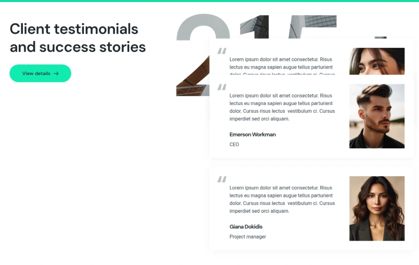 {"type":"@webflow/XscpData","payload":{"nodes":[{"_id":"bdcfeab0-31a2-caa8-ca80-bd688ebc8c19","type":"Section","tag":"section","classes":["2a205fe4-86fb-3b91-ec6a-f01cd9fe7237"],"children":["5e6791d8-c963-6ff6-6ac2-f2d50b615ba9"],"data":{"tag":"section","devlink":{"runtimeProps":{},"slot":""},"displayName":"","attr":{"id":""},"xattr":[],"search":{"exclude":false},"visibility":{"conditions":[]},"grid":{"type":"section"}}},{"_id":"5e6791d8-c963-6ff6-6ac2-f2d50b615ba9","type":"BlockContainer","tag":"div","classes":["2a205fe4-86fb-3b91-ec6a-f01cd9fe7246"],"children":["bd19ff90-d400-9ef4-2a40-c2514de9d96c"],"data":{"tag":"div","devlink":{"runtimeProps":{},"slot":""},"displayName":"","attr":{"id":""},"xattr":[],"search":{"exclude":false},"visibility":{"conditions":[]},"grid":{"type":"container"}}},{"_id":"bd19ff90-d400-9ef4-2a40-c2514de9d96c","type":"VFlex","tag":"div","classes":["2a205fe4-86fb-3b91-ec6a-f01cd9fe7240"],"children":["8e9c1266-7780-4e9b-f84e-6a38b48df104","440ffb26-7ef8-a4c5-6572-6a04fb87f29c"],"data":{"tag":"div","devlink":{"runtimeProps":{},"slot":""},"displayName":"","attr":{"id":""},"xattr":[],"search":{"exclude":false},"visibility":{"conditions":[]}}},{"_id":"8e9c1266-7780-4e9b-f84e-6a38b48df104","type":"HFlex","tag":"div","classes":["2a205fe4-86fb-3b91-ec6a-f01cd9fe724a"],"children":["9c3f7ce0-a38c-c557-877a-5d173df435d3","6bd076ee-12c8-2114-b2b2-8383dae96680"],"data":{"tag":"div","devlink":{"runtimeProps":{},"slot":""},"displayName":"","attr":{"id":""},"xattr":[],"search":{"exclude":false},"visibility":{"conditions":[]}}},{"_id":"9c3f7ce0-a38c-c557-877a-5d173df435d3","type":"HFlex","tag":"div","classes":["2a205fe4-86fb-3b91-ec6a-f01cd9fe723e"],"children":["21875722-3368-f762-de2d-f42fd6ae2dec"],"data":{"tag":"div","devlink":{"runtimeProps":{},"slot":""},"displayName":"","attr":{"id":""},"xattr":[],"search":{"exclude":false},"visibility":{"conditions":[]}}},{"_id":"21875722-3368-f762-de2d-f42fd6ae2dec","type":"Block","tag":"div","classes":["2a205fe4-86fb-3b91-ec6a-f01cd9fe7242"],"children":["eabb9f52-08f5-3f96-cea3-6f9e06beba0c","555c5a0e-63e2-42ac-23ac-fdf94611719a"],"data":{"text":false,"tag":"div","devlink":{"runtimeProps":{},"slot":""},"displayName":"","attr":{"id":""},"xattr":[],"search":{"exclude":false},"visibility":{"conditions":[]}}},{"_id":"eabb9f52-08f5-3f96-cea3-6f9e06beba0c","type":"Heading","tag":"h2","classes":["bdffca51-bcd6-454d-8bbb-5620d6a45996"],"children":["beb714e5-5135-6285-9255-cf9d40c21c8e"],"data":{"tag":"h2","devlink":{"runtimeProps":{},"slot":""},"displayName":"","attr":{"id":""},"xattr":[],"search":{"exclude":false},"visibility":{"conditions":[]}}},{"_id":"beb714e5-5135-6285-9255-cf9d40c21c8e","text":true,"v":"Client testimonials and success stories"},{"_id":"555c5a0e-63e2-42ac-23ac-fdf94611719a","type":"Link","tag":"a","classes":["c7497f39-9f66-3635-f0b1-65c93a9176a7"],"children":["5e5eba41-ed9f-e75b-95ca-6ac8bb2e6b51"],"data":{"button":false,"block":"inline","link":{"mode":"external","href":"#"},"eventIds":[],"attr":{"id":"","href":"#"},"devlink":{"runtimeProps":{},"slot":""},"displayName":"","xattr":[],"search":{"exclude":false},"visibility":{"conditions":[]}}},{"_id":"5e5eba41-ed9f-e75b-95ca-6ac8bb2e6b51","type":"HFlex","tag":"div","classes":["0a6c0e4a-0829-db99-b373-d3e276e8bda2"],"children":["790d92f6-3969-c87a-7683-7daf76899146","25bb7f85-a02f-0e5a-1507-3809bddbd51c"],"data":{"tag":"div","devlink":{"runtimeProps":{},"slot":""},"displayName":"","attr":{"id":""},"xattr":[],"search":{"exclude":false},"visibility":{"conditions":[]}}},{"_id":"790d92f6-3969-c87a-7683-7daf76899146","type":"Block","tag":"div","classes":["b99d81de-9b00-7c03-4ac5-44813d8b19ed"],"children":["94f6d67c-7348-25b1-2292-160430f55ac0","aeaa1fe9-4a79-7a56-f057-68c7a7e44142"],"data":{"text":false,"tag":"div","devlink":{"runtimeProps":{},"slot":""},"displayName":"","attr":{"id":""},"xattr":[],"search":{"exclude":false},"visibility":{"conditions":[]}}},{"_id":"94f6d67c-7348-25b1-2292-160430f55ac0","type":"Block","tag":"div","classes":["bdffca51-bcd6-454d-8bbb-5620d6a4599f","cee9d303-60df-1df1-a163-6eb8ef477fef"],"children":["0cd0a9fb-e5ab-690a-9859-fe9796634ee1"],"data":{"text":true,"tag":"div","devlink":{"runtimeProps":{},"slot":""},"displayName":"","attr":{"id":""},"xattr":[],"search":{"exclude":false},"visibility":{"conditions":[]}}},{"_id":"0cd0a9fb-e5ab-690a-9859-fe9796634ee1","text":true,"v":"View details"},{"_id":"aeaa1fe9-4a79-7a56-f057-68c7a7e44142","type":"Block","tag":"div","classes":["bdffca51-bcd6-454d-8bbb-5620d6a4599f","d3a0c7e4-44e7-8a27-8990-0e21cd9b3e4e"],"children":["036b94db-c2b6-2fb1-e530-1246e41f2676"],"data":{"text":true,"tag":"div","devlink":{"runtimeProps":{},"slot":""},"displayName":"","attr":{"id":""},"xattr":[],"search":{"exclude":false},"visibility":{"conditions":[]}}},{"_id":"036b94db-c2b6-2fb1-e530-1246e41f2676","text":true,"v":"View details"},{"_id":"25bb7f85-a02f-0e5a-1507-3809bddbd51c","type":"Block","tag":"div","classes":["b99d81de-9b00-7c03-4ac5-44813d8b19ef"],"children":["8c767984-f1fd-f69a-b959-b5f86291f4b3","84626750-40ee-d4fc-69c6-74a8f104c1e8"],"data":{"text":false,"tag":"div","devlink":{"runtimeProps":{},"slot":""},"displayName":"","attr":{"id":""},"xattr":[],"search":{"exclude":false},"visibility":{"conditions":[]}}},{"_id":"8c767984-f1fd-f69a-b959-b5f86291f4b3","type":"Image","tag":"img","classes":["6a42a4c2-059c-c8cc-3aa4-71323629a507"],"children":[],"data":{"img":{"id":"678bb5cee4df3fceccb01f71"},"srcsetDisabled":false,"attr":{"width":"16","height":"12","alt":"__wf_reserved_inherit","src":"https://cdn.prod.website-files.com/668cb8bce9430fdd78846808/678bb5cee4df3fceccb01f71_arrow.svg","loading":"lazy","id":""},"sizes":[],"devlink":{"runtimeProps":{},"slot":""},"displayName":"","xattr":[],"search":{"exclude":false},"visibility":{"conditions":[]}}},{"_id":"84626750-40ee-d4fc-69c6-74a8f104c1e8","type":"Image","tag":"img","classes":["6a42a4c2-059c-c8cc-3aa4-71323629a508"],"children":[],"data":{"img":{"id":"678bb5cee4df3fceccb01f71"},"s