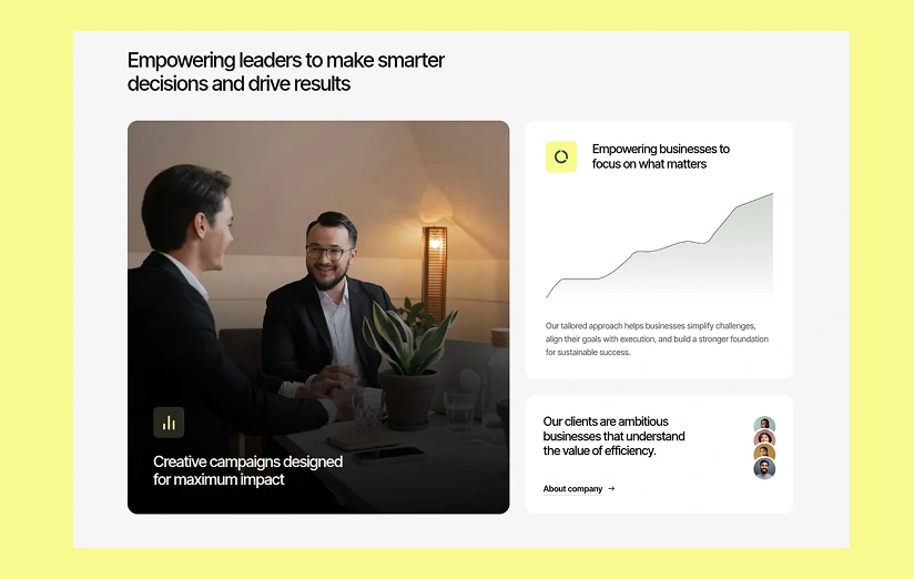 {"type":"@webflow/XscpData","payload":{"nodes":[{"_id":"c9c82da2-b557-9c83-893a-7a28c483f2b4","type":"Section","tag":"section","classes":[],"children":["2838d865-afa3-6c58-44cb-1d6c1db5b3d5"],"data":{"tag":"section","devlink":{"runtimeProps":{},"slot":""},"displayName":"","attr":{"id":""},"xattr":[],"search":{"exclude":false},"visibility":{"conditions":[]},"grid":{"type":"section"}}},{"_id":"2838d865-afa3-6c58-44cb-1d6c1db5b3d5","type":"BlockContainer","tag":"div","classes":["b8c6ae75-2cde-b91b-2655-eb13d2f26174"],"children":["dd3edc81-d7bf-335c-cfb0-e4f72d9a9ef7"],"data":{"tag":"div","devlink":{"runtimeProps":{},"slot":""},"displayName":"","attr":{"id":""},"xattr":[],"search":{"exclude":false},"visibility":{"conditions":[]},"grid":{"type":"container"}}},{"_id":"dd3edc81-d7bf-335c-cfb0-e4f72d9a9ef7","type":"VFlex","tag":"div","classes":["b5fbbd9c-b73e-e87e-e782-234d78b2f566"],"children":["e06f4ecb-d655-f74f-b619-67a0cae5c35a","bedf7284-6a0b-1993-8ef6-a4f139cb89b8"],"data":{"tag":"div","devlink":{"runtimeProps":{},"slot":""},"displayName":"","attr":{"id":""},"xattr":[{"name":"box","value":""}],"search":{"exclude":false},"visibility":{"conditions":[]}}},{"_id":"e06f4ecb-d655-f74f-b619-67a0cae5c35a","type":"Heading","tag":"h2","classes":["d9a51ef0-0ab8-01c5-0d7d-7fccce4640bb","a9d6cf1d-7573-f9aa-6b77-007c99f41fee"],"children":["8eae283d-1295-4e80-adda-d77563fb4205"],"data":{"tag":"h2","devlink":{"runtimeProps":{},"slot":""},"displayName":"","attr":{"id":""},"xattr":[{"name":"heading","value":""}],"search":{"exclude":false},"visibility":{"conditions":[]}}},{"_id":"8eae283d-1295-4e80-adda-d77563fb4205","text":true,"v":"Empowering leaders to make smarter decisions and drive results"},{"_id":"bedf7284-6a0b-1993-8ef6-a4f139cb89b8","type":"Layout","tag":"div","classes":["8ac5a37b-0b19-0152-3d2e-835bdd7bc6f2"],"children":["b54a2a74-8eeb-c7f4-cb34-bbd4ba960a20","e0a30ef6-2e30-40fa-6aa0-c4d6abd4a1ef","2ee79a45-2779-cb28-5756-8ab4e9f4013b"],"data":{"devlink":{"runtimeProps":{},"slot":""},"displayName":"","attr":{"id":""},"xattr":[],"search":{"exclude":false},"visibility":{"conditions":[]},"style":{"base":{"main":{"noPseudo":{"gridTemplateColumns":"1.425fr 1fr","gridTemplateRows":"auto auto auto"}},"small":{"noPseudo":{"gridTemplateColumns":"1.425fr 1.25fr","gridTemplateRows":"auto auto auto"}},"tiny":{"noPseudo":{"gridTemplateColumns":"1.425fr","gridTemplateRows":"auto auto auto"}}}}}},{"_id":"b54a2a74-8eeb-c7f4-cb34-bbd4ba960a20","type":"Cell","tag":"div","classes":[],"children":["f6ec3422-a26f-91ef-5f21-47e5e6a4e140"],"data":{"devlink":{"runtimeProps":{},"slot":""},"displayName":"","attr":{"id":""},"xattr":[],"search":{"exclude":false},"visibility":{"conditions":[]},"style":{"base":{"main":{"noPseudo":{"gridRowStart":"span 3","gridRowEnd":"span 3"}},"small":{"noPseudo":{"gridRowStart":"span 3","gridRowEnd":"span 3","gridColumnStart":"span 2","gridColumnEnd":"span 2"}},"tiny":{"noPseudo":{"gridRowStart":"span 1","gridRowEnd":"span 1","gridColumnStart":"span 1","gridColumnEnd":"span 1"}}}}}},{"_id":"f6ec3422-a26f-91ef-5f21-47e5e6a4e140","type":"VFlex","tag":"div","classes":["c1af28be-79f4-c94d-f71b-3501f36e26d2"],"children":["33eedb93-dc8e-f0c5-bf47-2836ebaff5ab","ff40c32d-8963-d249-8d3b-f85c1fa25e25"],"data":{"tag":"div","devlink":{"runtimeProps":{},"slot":""},"displayName":"","attr":{"id":""},"xattr":[],"search":{"exclude":false},"visibility":{"conditions":[]}}},{"_id":"33eedb93-dc8e-f0c5-bf47-2836ebaff5ab","type":"Image","tag":"img","classes":["6a3574ee-d172-c7f7-bfdc-cfbf683aedd8"],"children":[],"data":{"img":{"id":"68ba8e2a71476cae93196da9"},"srcsetDisabled":false,"attr":{"width":"740","height":"740","alt":"__wf_reserved_inherit","src":"https://cdn.prod.website-files.com/6667e1295d7fb05ba4fa34fe/68ba8e2a71476cae93196da9_Home%20company%20v1%20big%20card%20background.webp","loading":"lazy","id":""},"sizes":[{"max":767,"size":"100vw"},{"max":991,"size":"728px"},{"max":10000,"size":"740px"}],"devlink":{"runtimeProps":{},"slot":""},"displayName":"","xattr":[],"search":{"exclude":false},"visibility":{"conditions":[]}}},{"_id":"ff40c32d-8963-d249-8d3b-f85c1fa25e25","type":"VFlex","tag":"div","classes":["a85b1842-6b5d-5649-2551-16b1b2c396ed"],"children":["a9fcaf77-d609-6f65-8131-040a3b3778d6","9335b9bd-ac0f-314d-2b4c-a1173ad22579"],"data":{"tag":"div","devlink":{"runtimeProps":{},"slot":""},"displayName":"","attr":{"id":""},"xattr":[],"search":{"exclude":false},"visibility":{"conditions":[]}}},{"_id":"a9fcaf77-d609-6f65-8131-040a3b3778d6","type":"VFlex","tag":"div","classes":["5fbfe165-54dc-ea49-db62-e5bce38ccb10"],"children":["82644816-d5b6-3700-e5e2-9acffa56d24f"],"data":{"tag":"div","devlink":{"runtimeProps":{},"slot":""},"displayName":"","attr":{"id":""},"xattr":[],"search":{"exclude":false},"visibility":{"conditions":[]}}},{"_id":"82644816-d5b6-3700-e5e2-9acffa56d24f","type":"Block","tag":"div","classes":[],"children":["48b05c43-3bfc-f941-1f07-f1756519c189"],"data":{"text":false,"tag":"div","devlink":{"runtimeProps":{},"slot":""},"displayName":"","attr":{"id":""},"xattr":[],"search":{"exclude":false},"visibility":{"conditions":[]}}},{"_id":"48b05c43-3bfc-f941-1f07-f1756519c189","type":"Image","tag":"img","classes":["22d60ab0-c8a0-fce2-7f4c-5dc61c936add"],"children":[],"data":{"img":{"id":"68ba8f0ac582e2f31fd2a16f"},"srcsetDisabled":false,"attr":{"width":"37","height":"37","alt":"__wf_reserved_inherit","src":"https://cdn.prod.website-files.com/6667e1295d7fb05ba4fa34fe/68ba8f0ac582e2f31fd2a16f_Graph%20lines%20icon%20yellow.svg","loading":"lazy","id":""},"sizes":[],"devlink":{"runtimeProps":{},"slot":""},"displayName":"","xattr":[],"search":{"exclude":false},"visibility":{"conditions":[]}}},{"_id":"9335b9bd-ac0f-314d-2b4c-a1173ad22579","type":"Block","tag":"div","classes":["4a079a40-61cb-bd3e-500d-8181a2c2f41b","434acf2f-ee3c-d4a7-b75e-3bbfa3575152","4ee1db85-4333-2dab-c323-2780f36f6466"],"children":["89b2480b-bfcf-8b1d-3994-f67598cc01ed"],"data":{"text":true,"tag":"div","devlink":{"runtimeProps":{},"