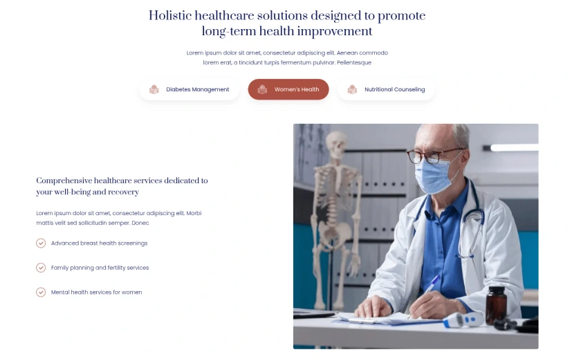 {"type":"@webflow/XscpData","payload":{"nodes":[{"_id":"49ceb607-826a-7d46-b239-a1bc3a7df50f","type":"Section","tag":"section","classes":["99112a16-caaf-1f5d-ea16-af462471cd74"],"children":["631f33b1-a7aa-02cf-4b8f-d53a35246318"],"data":{"tag":"section","devlink":{"runtimeProps":{},"slot":""},"displayName":"","attr":{"id":""},"xattr":[],"search":{"exclude":false},"visibility":{"conditions":[]},"grid":{"type":"section"}}},{"_id":"631f33b1-a7aa-02cf-4b8f-d53a35246318","type":"BlockContainer","tag":"div","classes":["6ca9ac7c-b726-99cc-6581-e26daaadbc0b"],"children":["aa75f172-0ae7-a19d-2de3-d179d8ae5d19"],"data":{"tag":"div","devlink":{"runtimeProps":{},"slot":""},"displayName":"","attr":{"id":""},"xattr":[],"search":{"exclude":false},"visibility":{"conditions":[]},"grid":{"type":"container"}}},{"_id":"aa75f172-0ae7-a19d-2de3-d179d8ae5d19","type":"VFlex","tag":"div","classes":["2a54bfe2-d75e-282e-4fe7-a1906e1bd296"],"children":["aed9cf8a-86de-f7dd-453c-5572746189cd","13d501c0-33d0-3faa-3296-279856776b17"],"data":{"tag":"div","devlink":{"runtimeProps":{},"slot":""},"displayName":"","attr":{"id":""},"xattr":[],"search":{"exclude":false},"visibility":{"conditions":[]}}},{"_id":"aed9cf8a-86de-f7dd-453c-5572746189cd","type":"VFlex","tag":"div","classes":["caf96b1a-871c-140e-c49e-3935fc4ab9e2"],"children":["8d13a2de-73f5-a54f-dea0-414d9d270155","08450ecc-fa1c-2724-2c66-1bc4f9edeadd"],"data":{"tag":"div","devlink":{"runtimeProps":{},"slot":""},"displayName":"","attr":{"id":""},"xattr":[],"search":{"exclude":false},"visibility":{"conditions":[]}}},{"_id":"8d13a2de-73f5-a54f-dea0-414d9d270155","type":"Heading","tag":"h2","classes":["b6679f4b-b03e-c778-185e-da270d0cadb8"],"children":["f78d6f01-80a9-e690-77da-b0f2616425c5"],"data":{"tag":"h2","devlink":{"runtimeProps":{},"slot":""},"displayName":"","attr":{"id":""},"xattr":[],"search":{"exclude":false},"visibility":{"conditions":[]}}},{"_id":"f78d6f01-80a9-e690-77da-b0f2616425c5","text":true,"v":"Holistic healthcare solutions designed to promote long-term health improvement"},{"_id":"08450ecc-fa1c-2724-2c66-1bc4f9edeadd","type":"Paragraph","tag":"p","classes":["b6679f4b-b03e-c778-185e-da270d0cadb8","6f6f9c38-7115-cfbc-116a-98522b28a24f"],"children":["401b7472-cb34-bf68-2c12-97f96ae884a9"],"data":{"devlink":{"runtimeProps":{},"slot":""},"displayName":"","attr":{"id":""},"xattr":[],"search":{"exclude":false},"visibility":{"conditions":[]}}},{"_id":"401b7472-cb34-bf68-2c12-97f96ae884a9","text":true,"v":"Lorem ipsum dolor sit amet, consectetur adipiscing elit. Aenean commodo lorem erat, a tincidunt turpis fermentum pulvinar. Pellentesque"},{"_id":"13d501c0-33d0-3faa-3296-279856776b17","type":"TabsWrapper","tag":"div","classes":["d0f88495-8606-5f8f-d9be-35385a4a336b"],"children":["1e85cc8d-0e96-bfa0-f7a4-7dac66f50375","bdb30bd6-3c09-8078-20df-6a1389e833bd"],"data":{"tabs":{"type":"wrapper","current":"Tab 2","easing":"ease","fadeIn":300,"fadeOut":100},"devlink":{"runtimeProps":{},"slot":""},"displayName":"","attr":{"id":""},"xattr":[],"search":{"exclude":false},"visibility":{"conditions":[]}}},{"_id":"1e85cc8d-0e96-bfa0-f7a4-7dac66f50375","type":"TabsMenu","tag":"div","classes":["8385687e-96e4-b11f-ad63-283007b61500"],"children":["5b6d80dd-0474-9776-23c4-98b641b18581","1debce8f-9b3f-6cba-1e5d-f63d7f16832a","9002e732-cb27-55ba-3350-adb78091b948"],"data":{"tag":"div","devlink":{"runtimeProps":{},"slot":""},"displayName":"","attr":{"id":""},"xattr":[],"search":{"exclude":false},"visibility":{"conditions":[]},"tabs":{"type":"menu"}}},{"_id":"5b6d80dd-0474-9776-23c4-98b641b18581","type":"TabsLink","tag":"a","classes":["417746ee-95ec-d9bb-73c2-c8a73dfb0307","eb93ded7-7f54-f898-5b15-bd88f9ad62c5"],"children":["8db9aaf3-2ff3-7461-f7d4-014af02f3822","d5035fe0-ce4d-462d-0fb7-af816d0f8953","2e8003bd-8fbd-417e-09b7-429195bd4a2c"],"data":{"attr":{"data-w-tab":"Tab 1","id":""},"devlink":{"runtimeProps":{},"slot":""},"displayName":"","xattr":[],"search":{"exclude":false},"visibility":{"conditions":[]},"block":"inline","tabs":{"type":"link"}}},{"_id":"8db9aaf3-2ff3-7461-f7d4-014af02f3822","type":"HFlex","tag":"div","classes":["8c68f7b3-1f1b-44b6-e3bd-0c5fb077cfa9"],"children":["7793c669-e689-bc24-7ac0-aa22210fd235","d660066c-a33c-298f-9eb7-94601c71029d"],"data":{"tag":"div","devlink":{"runtimeProps":{},"slot":""},"displayName":"","attr":{"id":""},"xattr":[],"search":{"exclude":false},"visibility":{"conditions":[]}}},{"_id":"7793c669-e689-bc24-7ac0-aa22210fd235","type":"Image","tag":"img","classes":["304a4ac6-014a-cba1-7079-7a136fa0e431","072ec318-fa13-d6c8-194b-634ee7c0239f"],"children":[],"data":{"img":{"id":"674eae401fe2c010356f5714"},"srcsetDisabled":false,"attr":{"width":"24","height":"24","alt":"__wf_reserved_inherit","src":"https://cdn.prod.website-files.com/66ffc150626b46190b687edf/674eae401fe2c010356f5714_home-1-icon-6.svg","loading":"lazy","id":""},"sizes":[],"devlink":{"runtimeProps":{},"slot":""},"displayName":"","xattr":[],"search":{"exclude":false},"visibility":{"conditions":[]}}},{"_id":"d660066c-a33c-298f-9eb7-94601c71029d","type":"Image","tag":"img","classes":["5004519c-1932-bb96-fc71-8976a45cd59d","826d2fac-0905-99d7-958c-a4a4722f53b5"],"children":[],"data":{"img":{"id":"674eae401fe2c010356f571d"},"srcsetDisabled":false,"attr":{"width":"24","height":"24","alt":"__wf_reserved_inherit","src":"https://cdn.prod.website-files.com/66ffc150626b46190b687edf/674eae401fe2c010356f571d_home-1-icon-5.svg","loading":"lazy","id":""},"sizes":[],"devlink":{"runtimeProps":{},"slot":""},"displayName":"","xattr":[],"search":{"exclude":false},"visibility":{"conditions":[]}}},{"_id":"d5035fe0-ce4d-462d-0fb7-af816d0f8953","type":"Block","tag":"div","classes":[],"children":["46758404-053c-c749-0566-0baa79da1ee5"],"data":{"text":true,"tag":"div","devlink":{"runtimeProps":{},"slot":""},"displayName":"","attr":{"id":""},"xattr":[],"search":{"exclude":false},"visibility":{"conditions":[]}}},{"_id":"46758404-053c-c749-0566-0baa79da1ee5","text":true,"v":"Diabetes Management"},{"_id":"2
