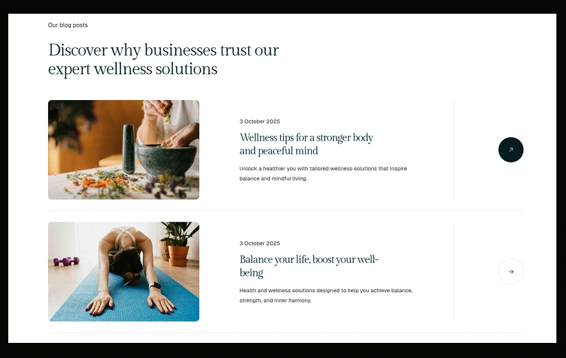 {"type":"@webflow/XscpData","payload":{"nodes":[{"_id":"cede0ff8-16c4-f038-5be0-a26eadb28e95","type":"Section","tag":"section","classes":["0d426aa2-22b8-7330-22df-56260d2f25f5","293b4ccd-4ec3-8b08-d55c-9478d57aca20"],"children":["450d3ed4-c27a-59e4-58be-8e73c59a3b37"],"data":{"tag":"section","devlink":{"runtimeProps":{},"slot":""},"displayName":"","attr":{"id":""},"xattr":[],"search":{"exclude":false},"visibility":{"conditions":[]},"grid":{"type":"section"}}},{"_id":"450d3ed4-c27a-59e4-58be-8e73c59a3b37","type":"BlockContainer","tag":"div","classes":["eb85b74e-b637-f4fe-859c-04fa936bf712"],"children":["8c0bc434-e672-0292-c901-fff539e5eb8e","f35a92d3-240c-8433-978d-9e53b97b7009"],"data":{"tag":"div","devlink":{"runtimeProps":{},"slot":""},"displayName":"","attr":{"id":""},"xattr":[],"search":{"exclude":false},"visibility":{"conditions":[]},"grid":{"type":"container"}}},{"_id":"8c0bc434-e672-0292-c901-fff539e5eb8e","type":"VFlex","tag":"div","classes":["b41603c7-e2cf-ef06-d595-49b735e2923e","b41603c7-e2cf-ef06-d595-49b735e29246"],"children":["3438fcd7-4e7c-bf10-88d0-4df9b775f891","01acb2b8-e7f4-79d7-0475-65901a3760f4"],"data":{"tag":"div","devlink":{"runtimeProps":{},"slot":""},"displayName":"","attr":{"id":""},"xattr":[],"search":{"exclude":false},"visibility":{"conditions":[]}}},{"_id":"3438fcd7-4e7c-bf10-88d0-4df9b775f891","type":"Block","tag":"div","classes":["bd6fe006-1f06-26da-88fd-9b8c50fd6af1","bd6fe006-1f06-26da-88fd-9b8c50fd6b02"],"children":["226b8fb3-94cb-85b9-aa40-01a4310c459c"],"data":{"text":true,"tag":"div","devlink":{"runtimeProps":{},"slot":""},"displayName":"","attr":{"id":""},"xattr":[],"search":{"exclude":false},"visibility":{"conditions":[]}}},{"_id":"226b8fb3-94cb-85b9-aa40-01a4310c459c","text":true,"v":"Our blog posts"},{"_id":"01acb2b8-e7f4-79d7-0475-65901a3760f4","type":"Block","tag":"div","classes":["eb85b74e-b637-f4fe-859c-04fa936bf715"],"children":["8c24050c-e9bd-2a49-e891-a76e0345a138"],"data":{"text":false,"tag":"div","devlink":{"runtimeProps":{},"slot":""},"displayName":"","attr":{"id":""},"xattr":[],"search":{"exclude":false},"visibility":{"conditions":[]}}},{"_id":"8c24050c-e9bd-2a49-e891-a76e0345a138","type":"Heading","tag":"h2","classes":["eb85b74e-b637-f4fe-859c-04fa936bf707"],"children":["a679f597-cec2-c497-4507-fd74499409a2"],"data":{"tag":"h2","devlink":{"runtimeProps":{},"slot":""},"displayName":"","attr":{"id":""},"xattr":[],"search":{"exclude":false},"visibility":{"conditions":[]}}},{"_id":"a679f597-cec2-c497-4507-fd74499409a2","text":true,"v":"Discover why businesses trust our expert wellness solutions"},{"_id":"f35a92d3-240c-8433-978d-9e53b97b7009","type":"VFlex","tag":"div","classes":["323b6b7c-2f1a-8420-88ed-bca06e11bae3"],"children":["9b2b873e-e321-8ed2-3ad1-6ab86ff7e820","a8f1547a-388c-9f6d-ec13-f6807ea0b2cc","6756d04e-c745-60b7-2967-d037257905c4","0fd25f5d-ae91-5697-5c2e-2dbbf76c6499","6dc48be6-e20d-2d12-0bcf-b8a7a8ae4225","40afb914-b895-22e2-4705-29c65af15878","e236a2b1-e446-9406-08c0-2a4a54beab41","f1c16713-11dd-12e0-6c89-0593dcaeaaf3","a42014bc-0a9d-412c-09f5-40806f8bdeac","ad02e0a8-0778-7f3e-dcfd-1588879a73f3","24c112ae-e455-3b3b-17dc-6f5d5eb21c73","bd3a9883-cbae-817f-11ef-a0cf3269e39d"],"data":{"tag":"div","devlink":{"runtimeProps":{},"slot":""},"displayName":"","attr":{"id":""},"xattr":[],"search":{"exclude":false},"visibility":{"conditions":[]}}},{"_id":"9b2b873e-e321-8ed2-3ad1-6ab86ff7e820","type":"Block","tag":"div","classes":["dc91a626-1510-802a-5ecb-1d70a3a2be5b"],"children":["0c5eb67f-ff4f-fea3-2a1c-42375ca01615"],"data":{"text":false,"tag":"div","devlink":{"runtimeProps":{},"slot":""},"displayName":"","attr":{"id":""},"xattr":[],"search":{"exclude":false},"visibility":{"conditions":[]}}},{"_id":"0c5eb67f-ff4f-fea3-2a1c-42375ca01615","type":"Link","tag":"a","classes":["323b6b7c-2f1a-8420-88ed-bca06e11baeb","323b6b7c-2f1a-8420-88ed-bca06e11baef"],"children":["7f3bf8f1-8e4a-a91b-59bb-f305025c02fd"],"data":{"button":false,"block":"inline","link":{"mode":"external"},"eventIds":[],"attr":{"id":"","href":"#"},"devlink":{"runtimeProps":{},"slot":""},"displayName":"","xattr":[],"search":{"exclude":false},"visibility":{"conditions":[]},"dyn":{"bind":{}}}},{"_id":"7f3bf8f1-8e4a-a91b-59bb-f305025c02fd","type":"HFlex","tag":"div","classes":["323b6b7c-2f1a-8420-88ed-bca06e11bae6"],"children":["ff944bcb-e688-60ce-6f3c-52d54eacdb50","e74bd4c2-2e7b-b763-bee5-4c1dcebf23c9"],"data":{"tag":"div","devlink":{"runtimeProps":{},"slot":""},"displayName":"","attr":{"id":""},"xattr":[],"search":{"exclude":false},"visibility":{"conditions":[]}}},{"_id":"ff944bcb-e688-60ce-6f3c-52d54eacdb50","type":"Block","tag":"div","classes":["323b6b7c-2f1a-8420-88ed-bca06e11bae1","323b6b7c-2f1a-8420-88ed-bca06e11baed","323b6b7c-2f1a-8420-88ed-bca06e11baf1"],"children":["d9d322c3-18b0-8dff-7042-a4f7ce745cff"],"data":{"text":false,"tag":"div","devlink":{"runtimeProps":{},"slot":""},"displayName":"","attr":{"id":""},"xattr":[],"search":{"exclude":false},"visibility":{"conditions":[]}}},{"_id":"d9d322c3-18b0-8dff-7042-a4f7ce745cff","type":"Image","tag":"img","classes":["323b6b7c-2f1a-8420-88ed-bca06e11bae2","323b6b7c-2f1a-8420-88ed-bca06e11baf0"],"children":[],"data":{"img":{},"srcsetDisabled":false,"attr":{"width":"410","height":"270","alt":"__wf_reserved_inherit","src":"https://cdn.prod.website-files.com/68be90dab82e6ba640669991/68c15f2d0be5239576493176_Blog%203.webp","loading":"lazy","id":""},"sizes":[{"max":479,"size":"100vw"},{"max":10000,"size":"410px"}],"devlink":{"runtimeProps":{},"slot":""},"displayName":"","xattr":[],"search":{"exclude":false},"visibility":{"conditions":[]}}},{"_id":"e74bd4c2-2e7b-b763-bee5-4c1dcebf23c9","type":"HFlex","tag":"div","classes":["323b6b7c-2f1a-8420-88ed-bca06e11bae4"],"children":["ba5a2482-4d1f-b130-08bb-5b7514340ba4","d5bfc0c8-9bbe-7b09-6769-d83d3935488d"],"data":{"tag":"div","devlink":{"runtimeProps":{},"slot":""},"displayName":"","attr":{"id":""},"xattr":[],"search":{"exclude":false},"visibility":{"conditions":[]}}},{"_id":"ba5a24